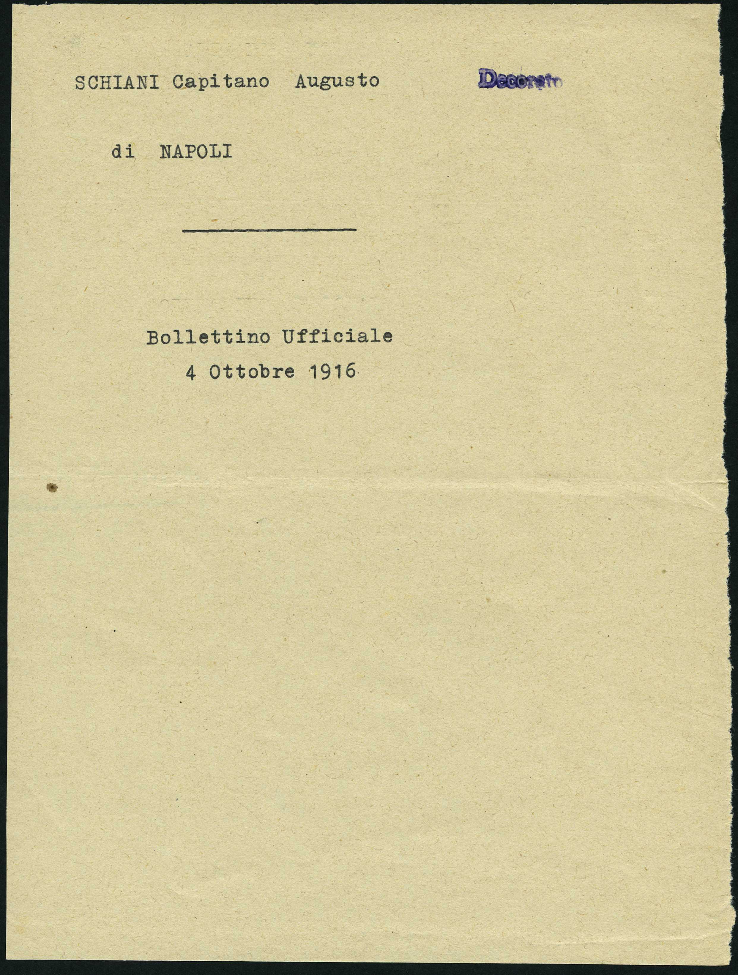 Istituto per la Storia del Risorgimento Italian.../Fondo caduti prima guerra mondiale/Schiani Augusto - Schipani Ciro/Schiani Augusto, Napoli