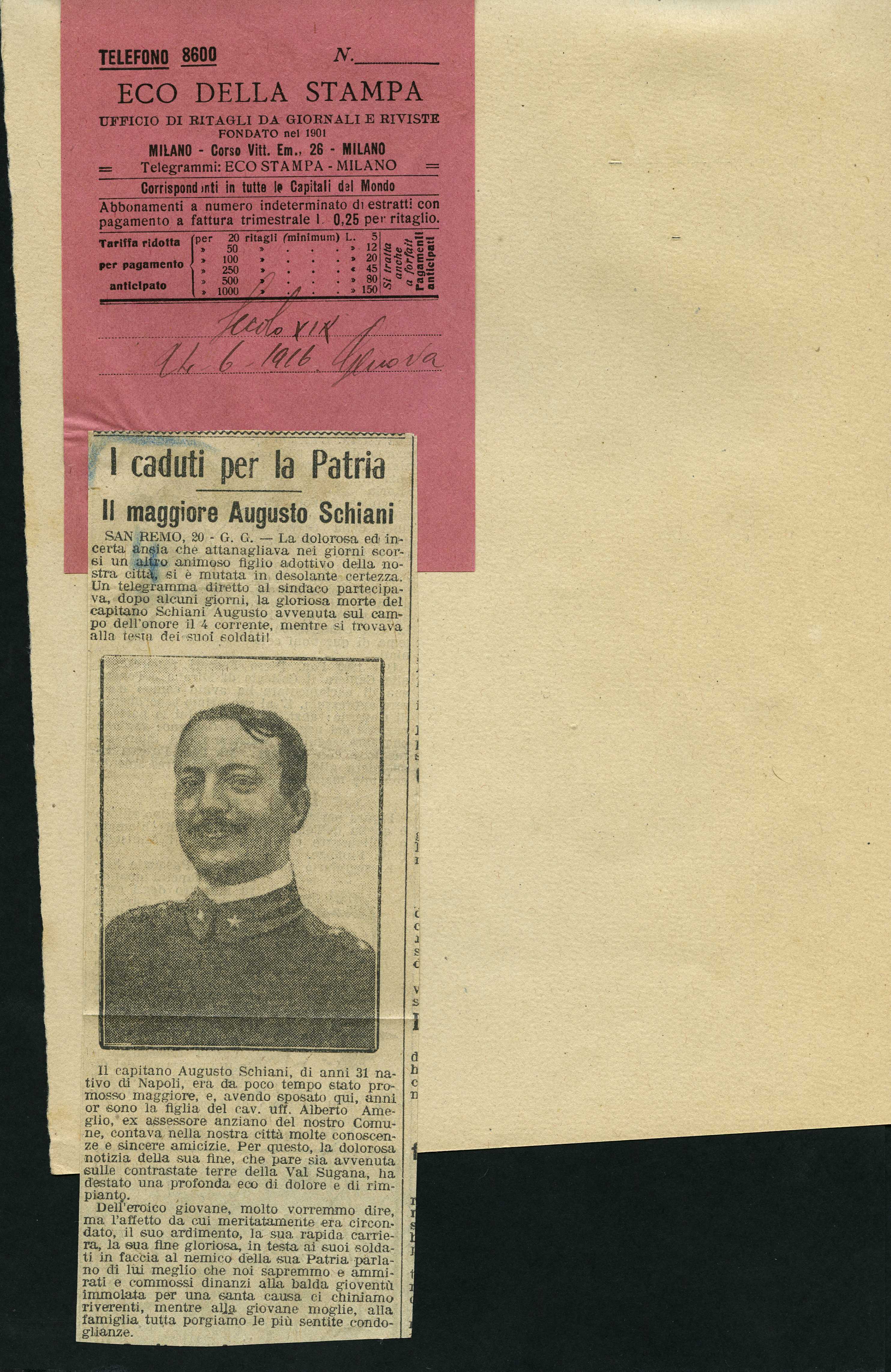 Istituto per la Storia del Risorgimento Italian.../Fondo caduti prima guerra mondiale/Schiani Augusto - Schipani Ciro/Schiani Augusto, Napoli