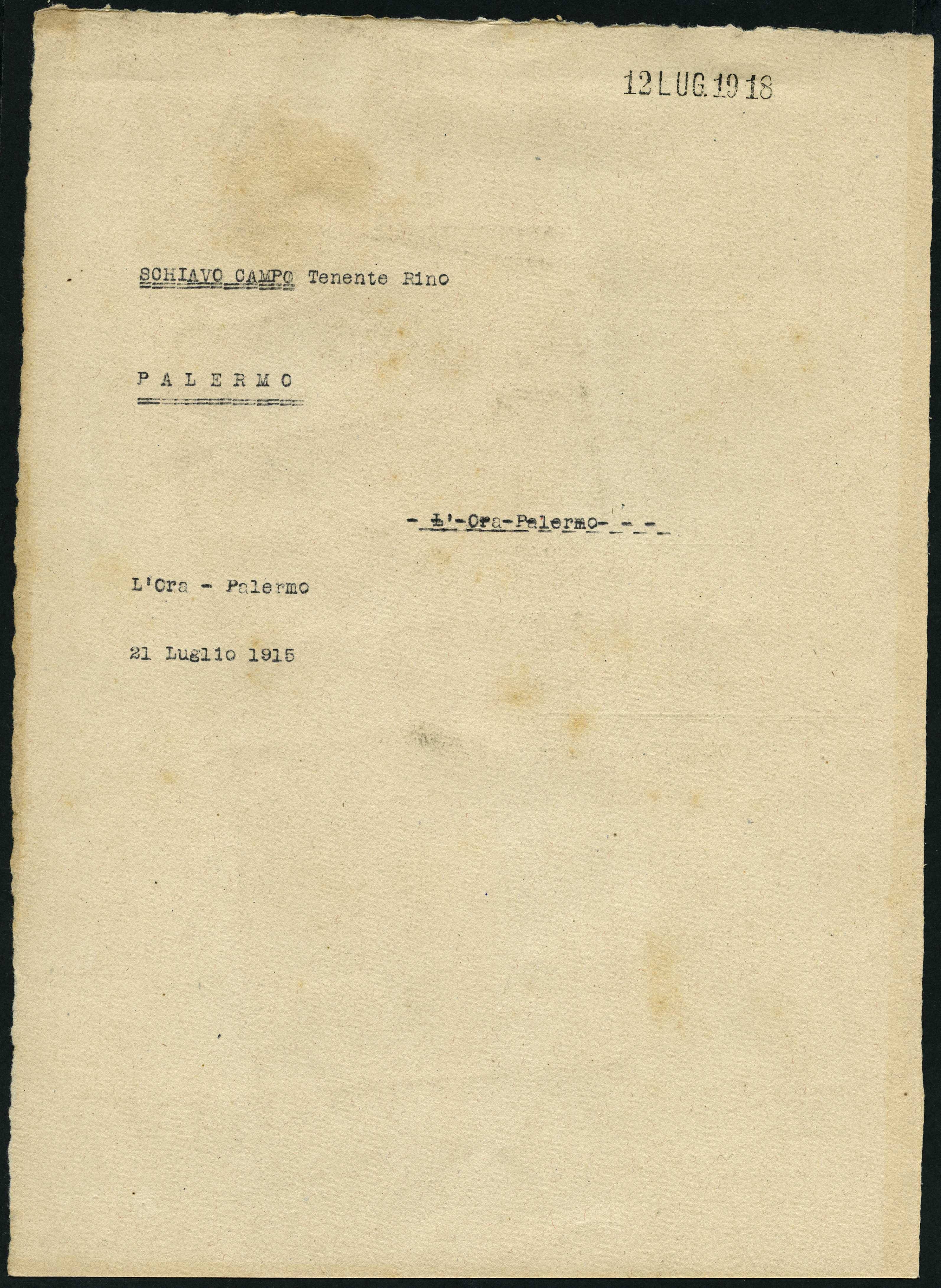 Istituto per la Storia del Risorgimento Italian.../Fondo caduti prima guerra mondiale/Schiani Augusto - Schipani Ciro/Schiavo Campo Salvatore, Palermo