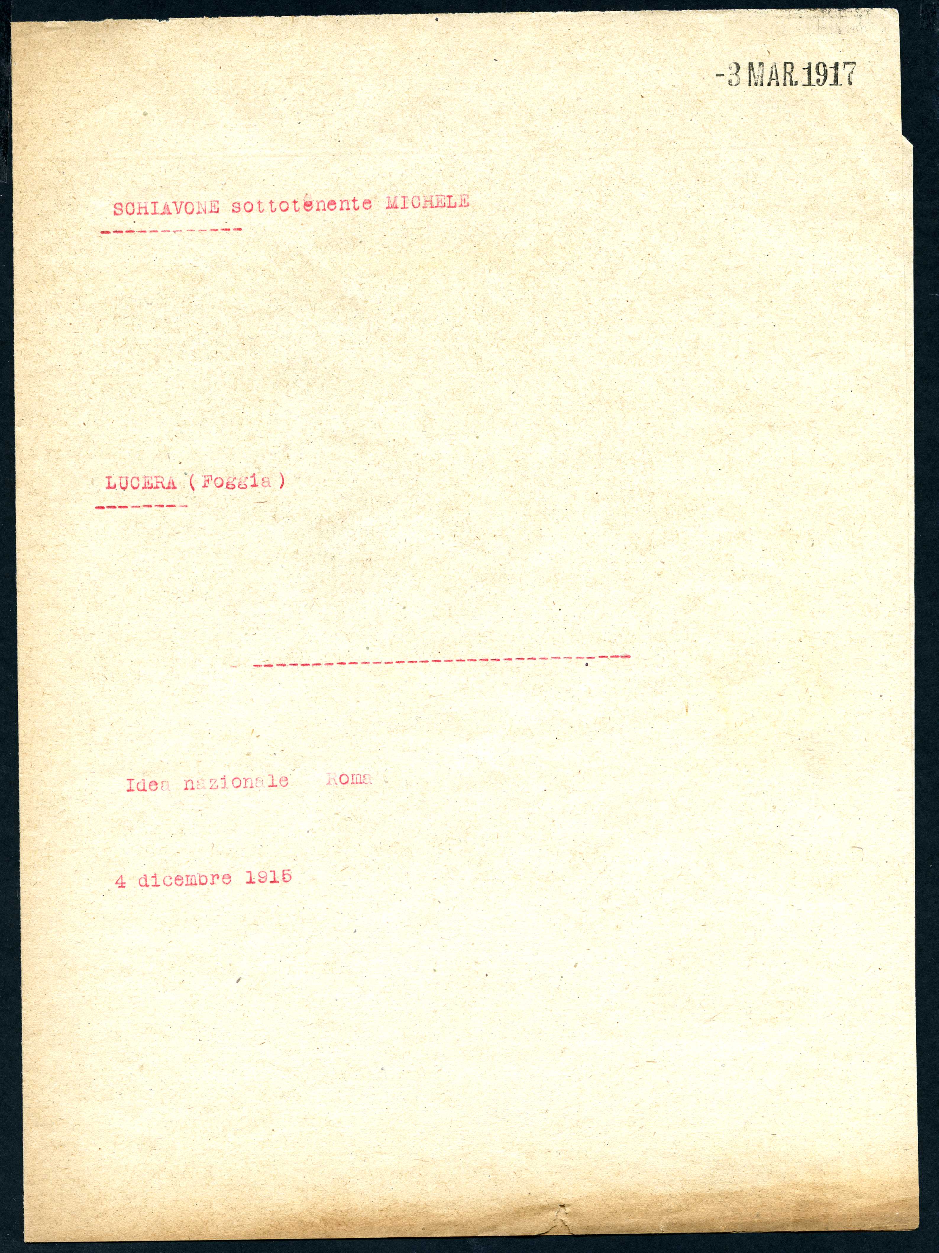 Istituto per la Storia del Risorgimento Italian.../Fondo caduti prima guerra mondiale/Schiani Augusto - Schipani Ciro/Schiavone Michele, Lucera (Foggia)