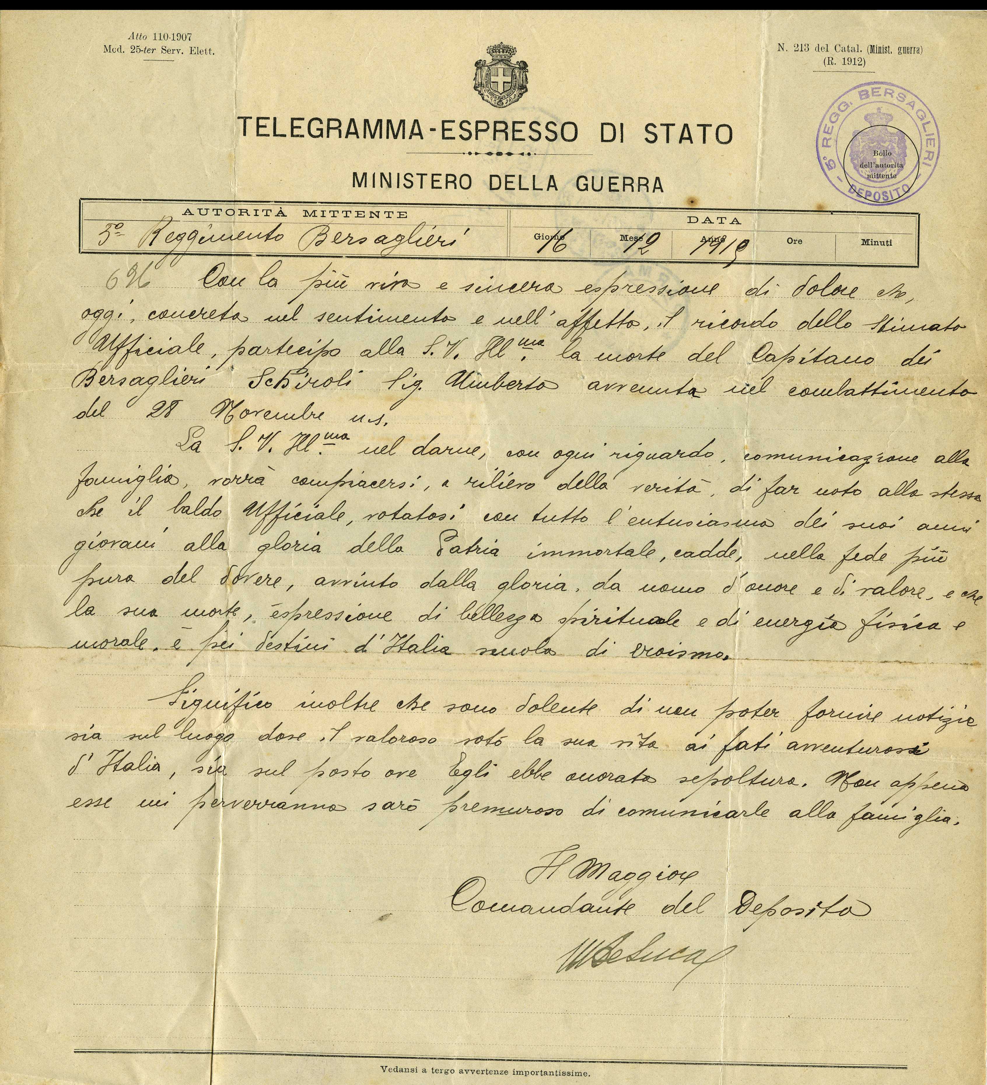 Istituto per la Storia del Risorgimento Italian.../Fondo caduti prima guerra mondiale/Schirato Antonio - Scoffo Marino/Schiroli Umberto, Reggello (Firenze)