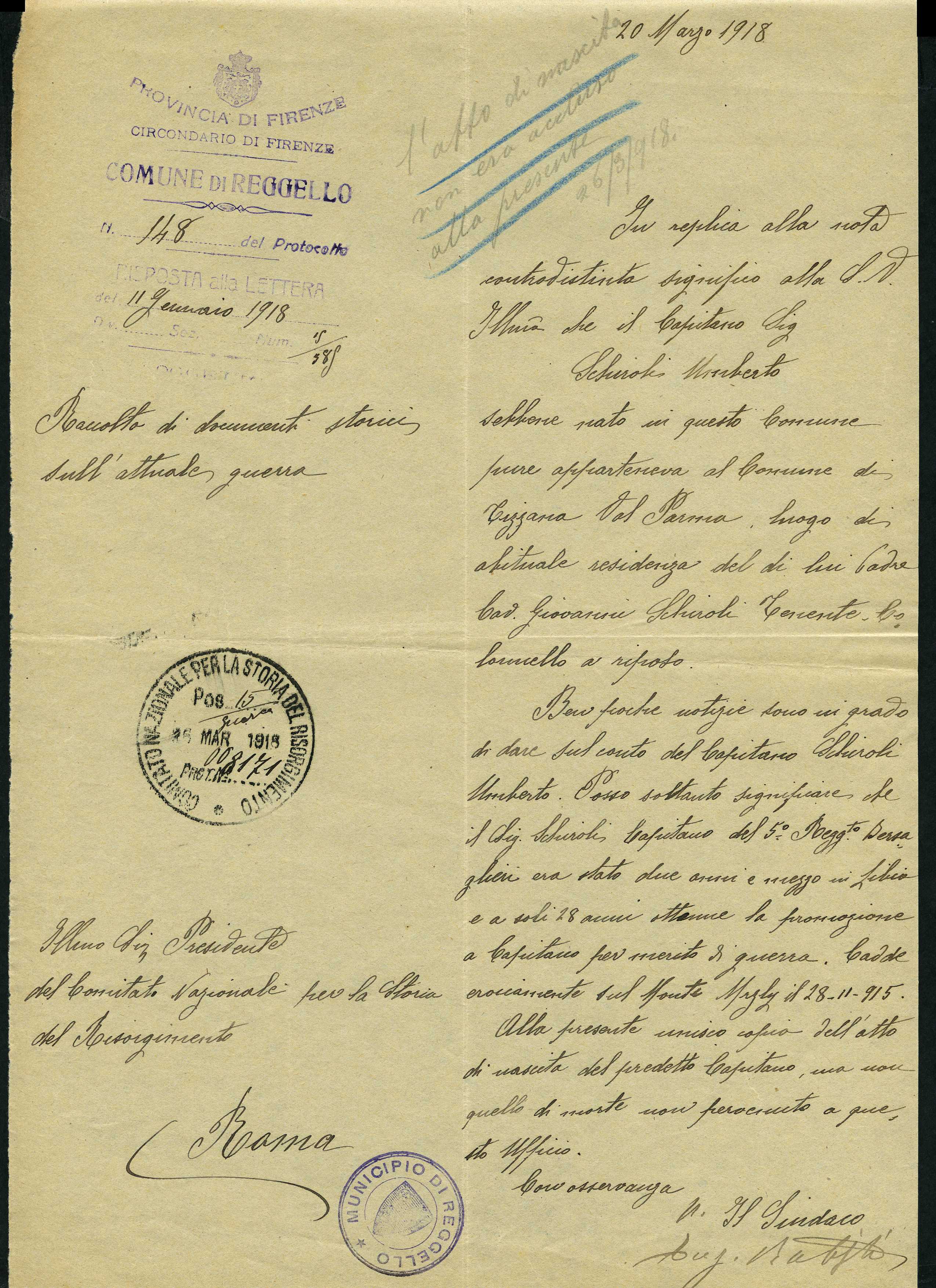 Istituto per la Storia del Risorgimento Italian.../Fondo caduti prima guerra mondiale/Schirato Antonio - Scoffo Marino/Schiroli Umberto, Reggello (Firenze)