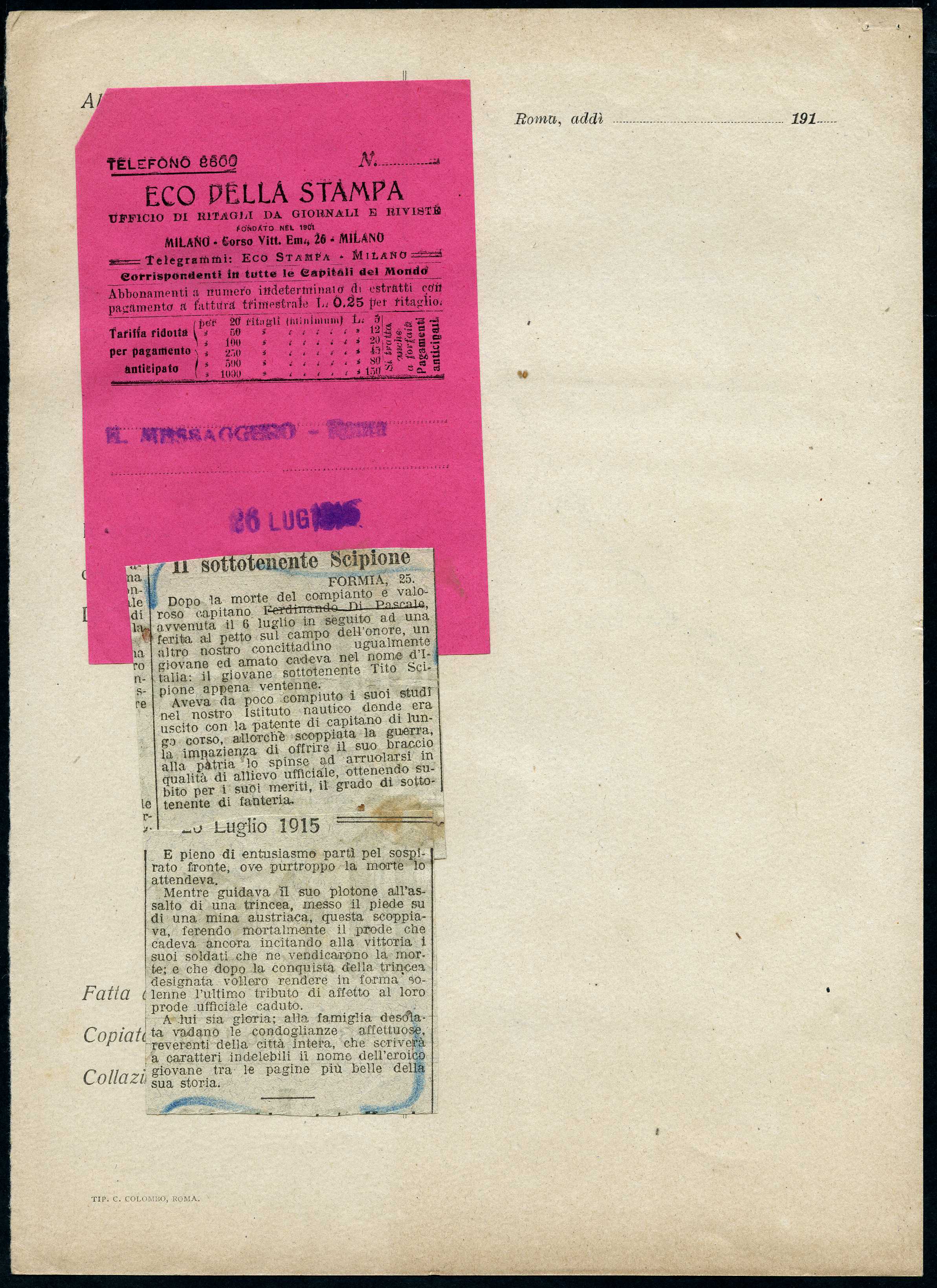 Istituto per la Storia del Risorgimento Italian.../Fondo caduti prima guerra mondiale/Schirato Antonio - Scoffo Marino/Scipione Tito, Formia (Caserta)