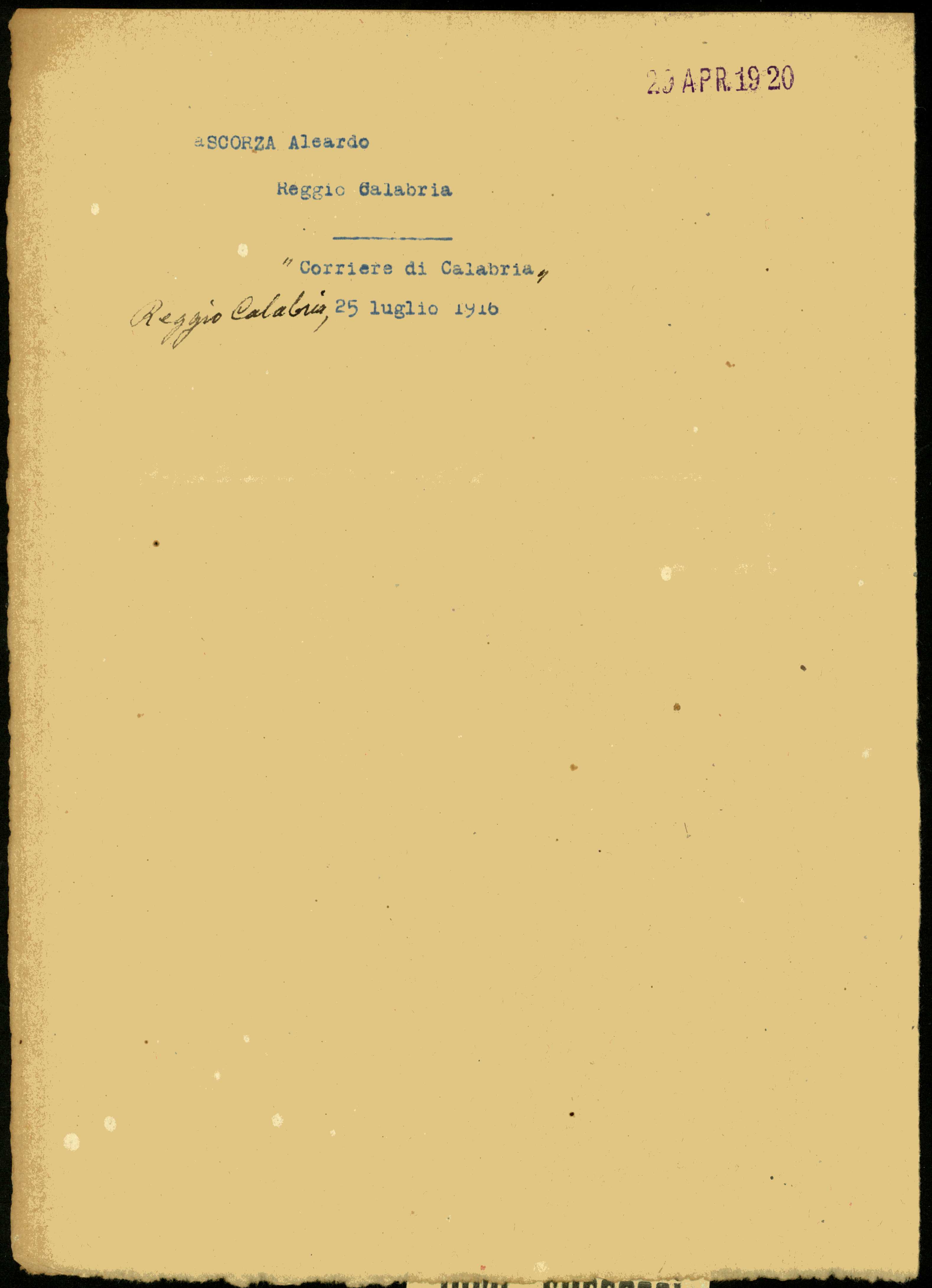 Istituto per la Storia del Risorgimento Italian.../Fondo caduti prima guerra mondiale/Scolari Angelo - Sdrin Giorgio/Scorza Aleardo, Reggio Calabria