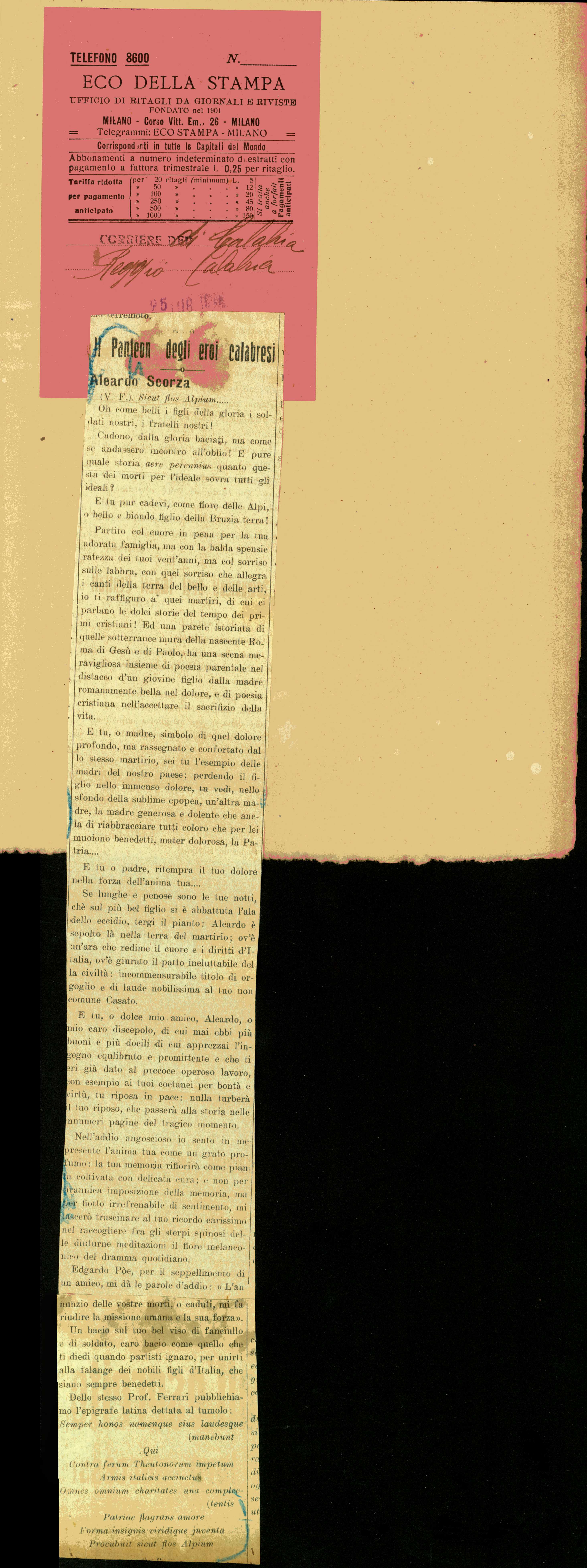 Istituto per la Storia del Risorgimento Italian.../Fondo caduti prima guerra mondiale/Scolari Angelo - Sdrin Giorgio/Scorza Aleardo, Reggio Calabria