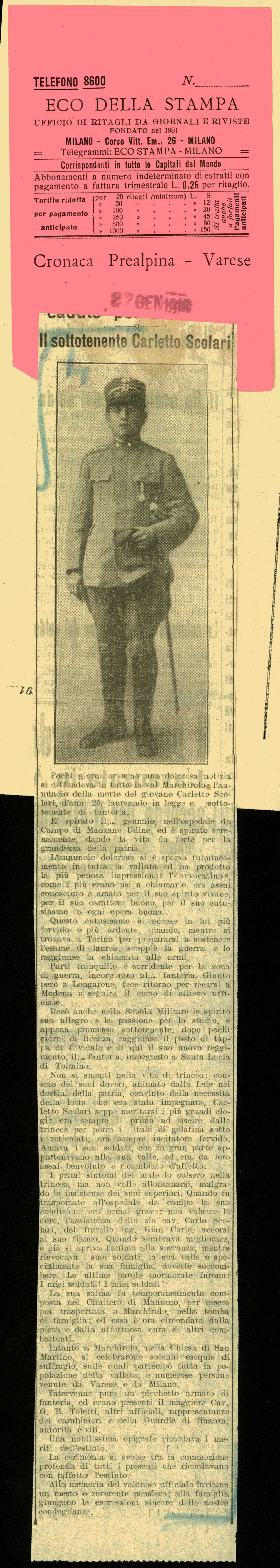 Istituto per la Storia del Risorgimento Italian.../Fondo caduti prima guerra mondiale/Scolari Angelo - Sdrin Giorgio/Scolari Carletto, Marchirolo (Como)