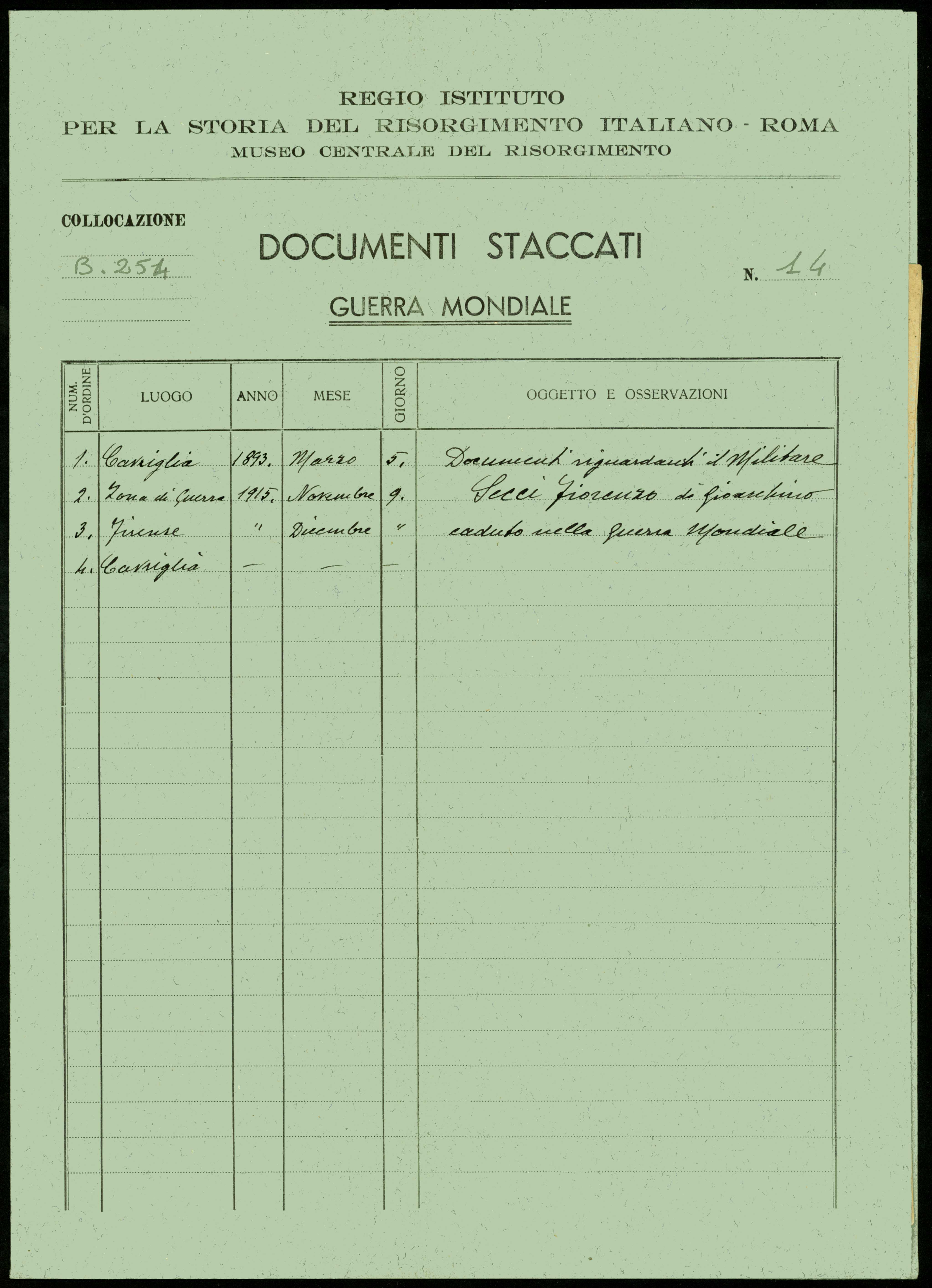 3.1.1.2. Segnatura corrente:   (Caduti 254/14) 14 (1)