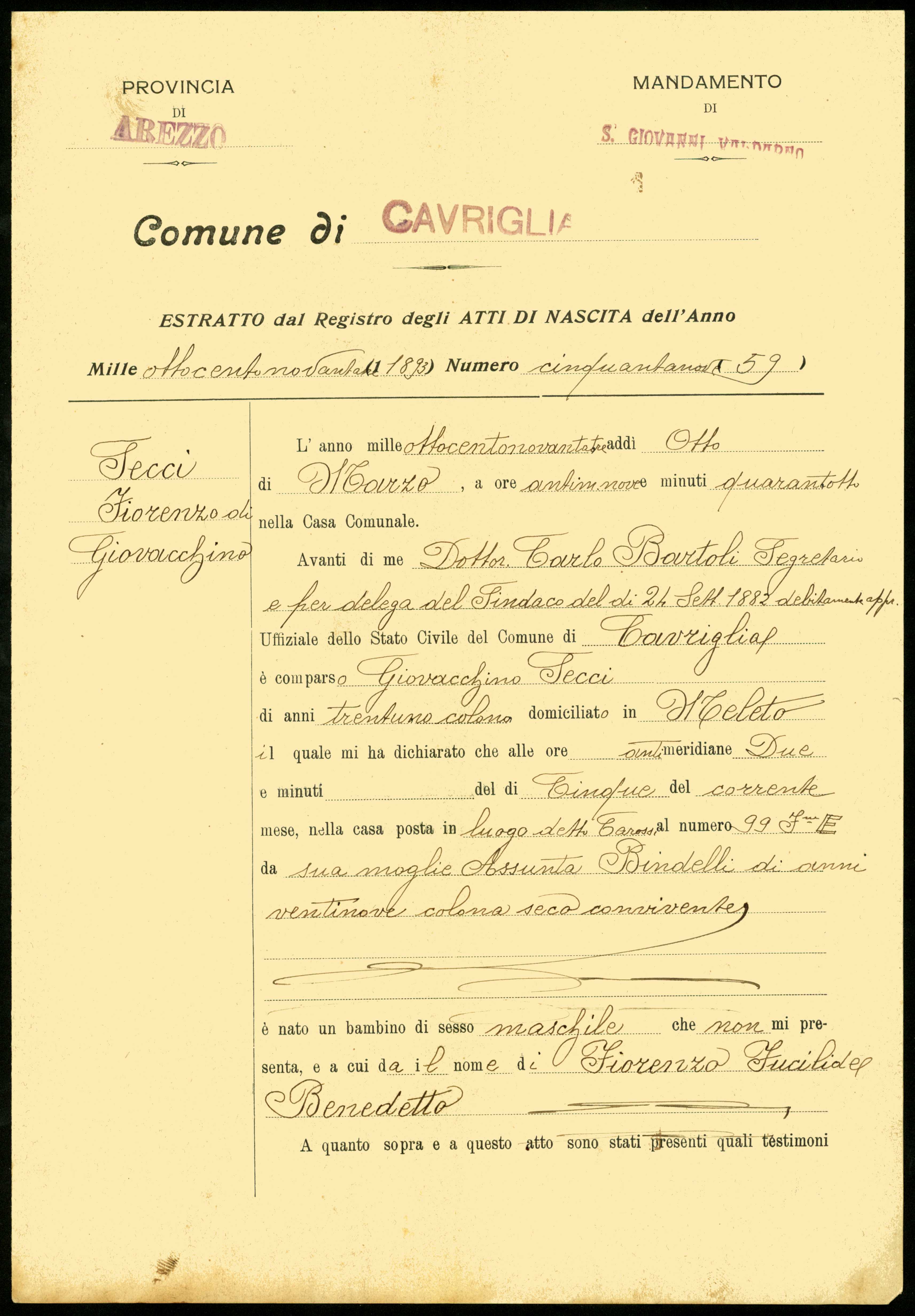 Documento: Secci Fiorenzo, Cavriglia (Arezzo)