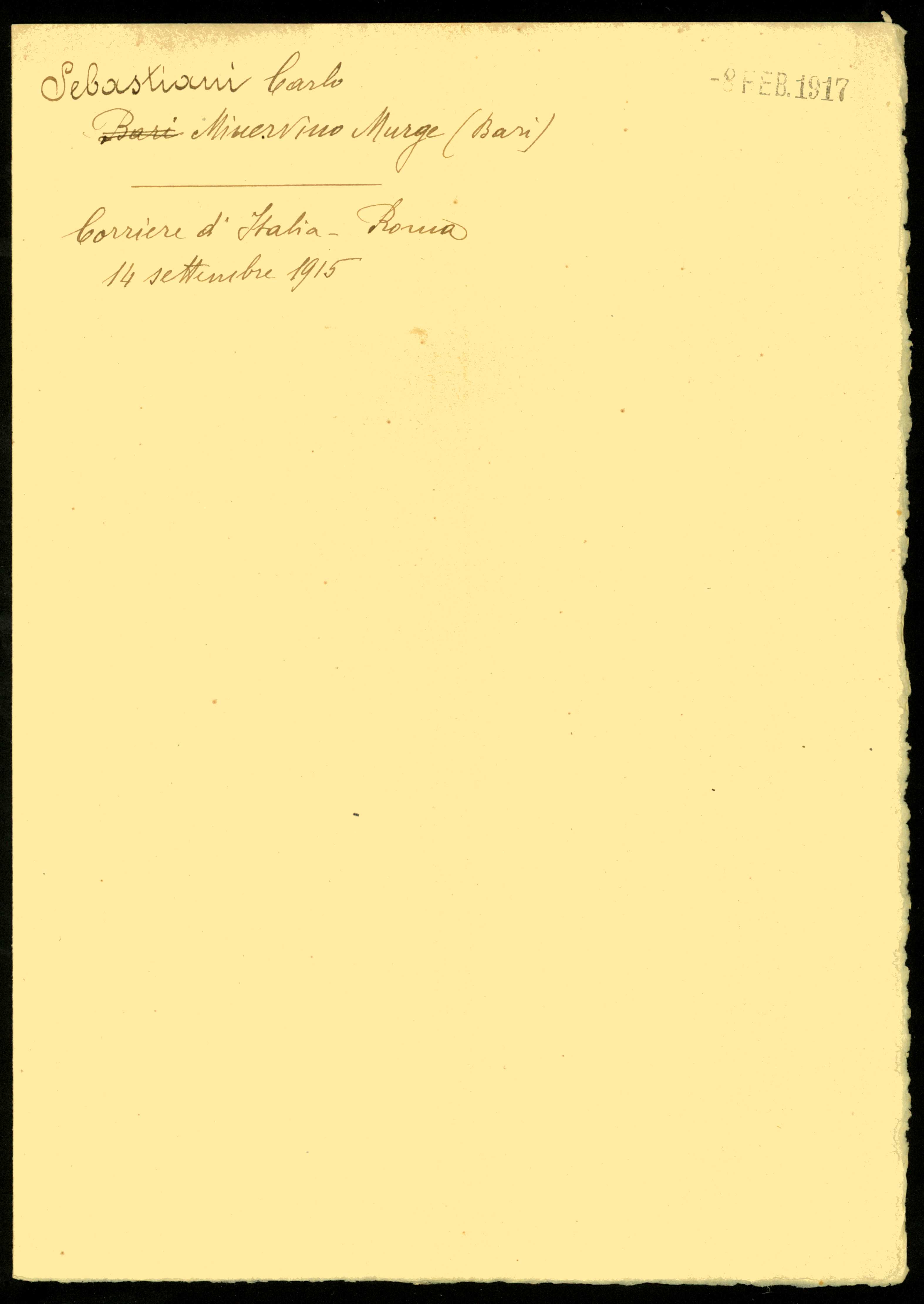 Percorso: Istituto per la Storia del Risorgimento Italian.../Fondo caduti prima guerra mondiale/Sebastiani Antonio - Selmin Alessandro/Sebastiani Carlo, Minervino Murge (Bari)