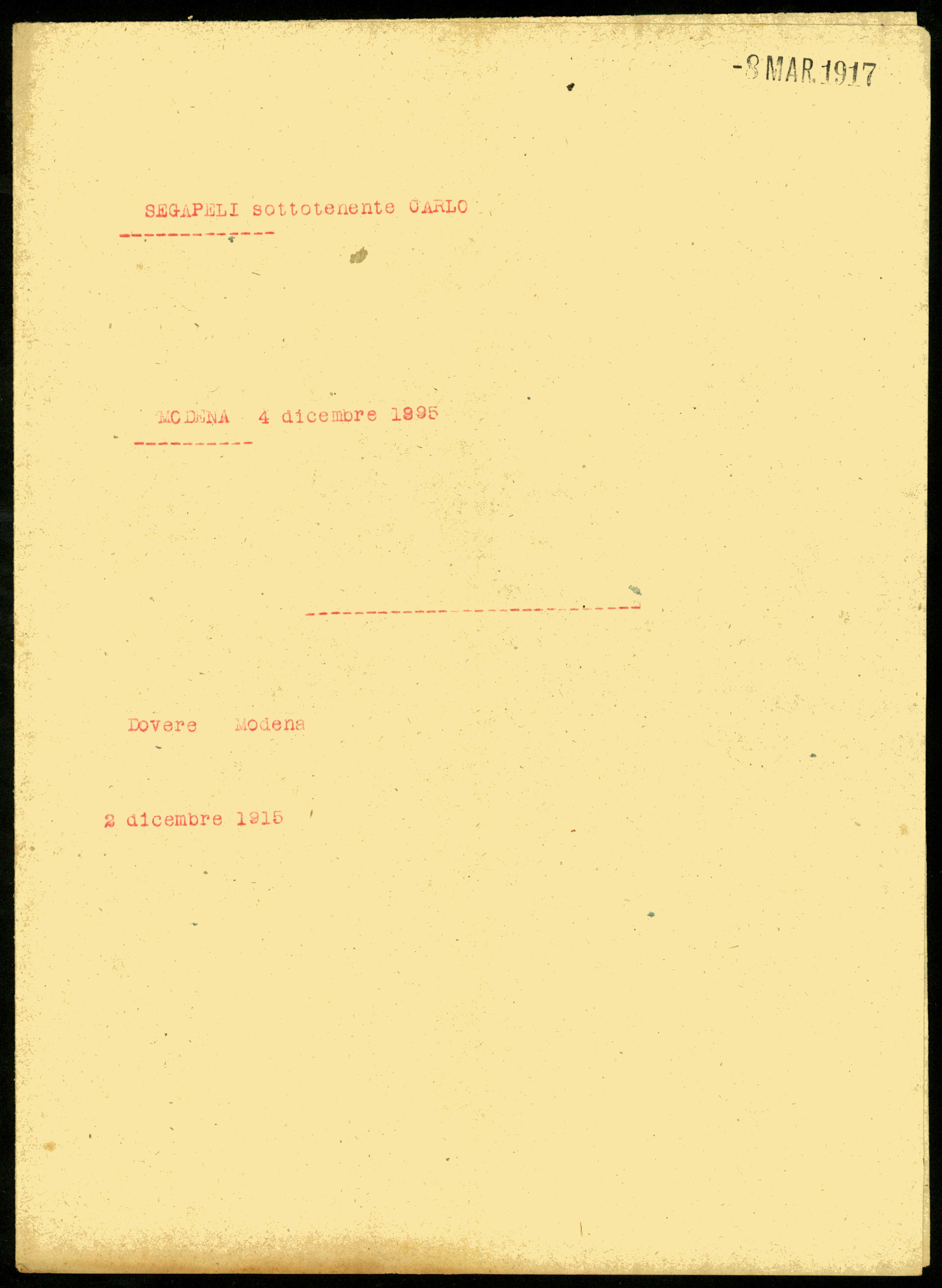 Istituto per la Storia del Risorgimento Italian.../Fondo caduti prima guerra mondiale/Sebastiani Antonio - Selmin Alessandro/Segapeli Carlo, Modena