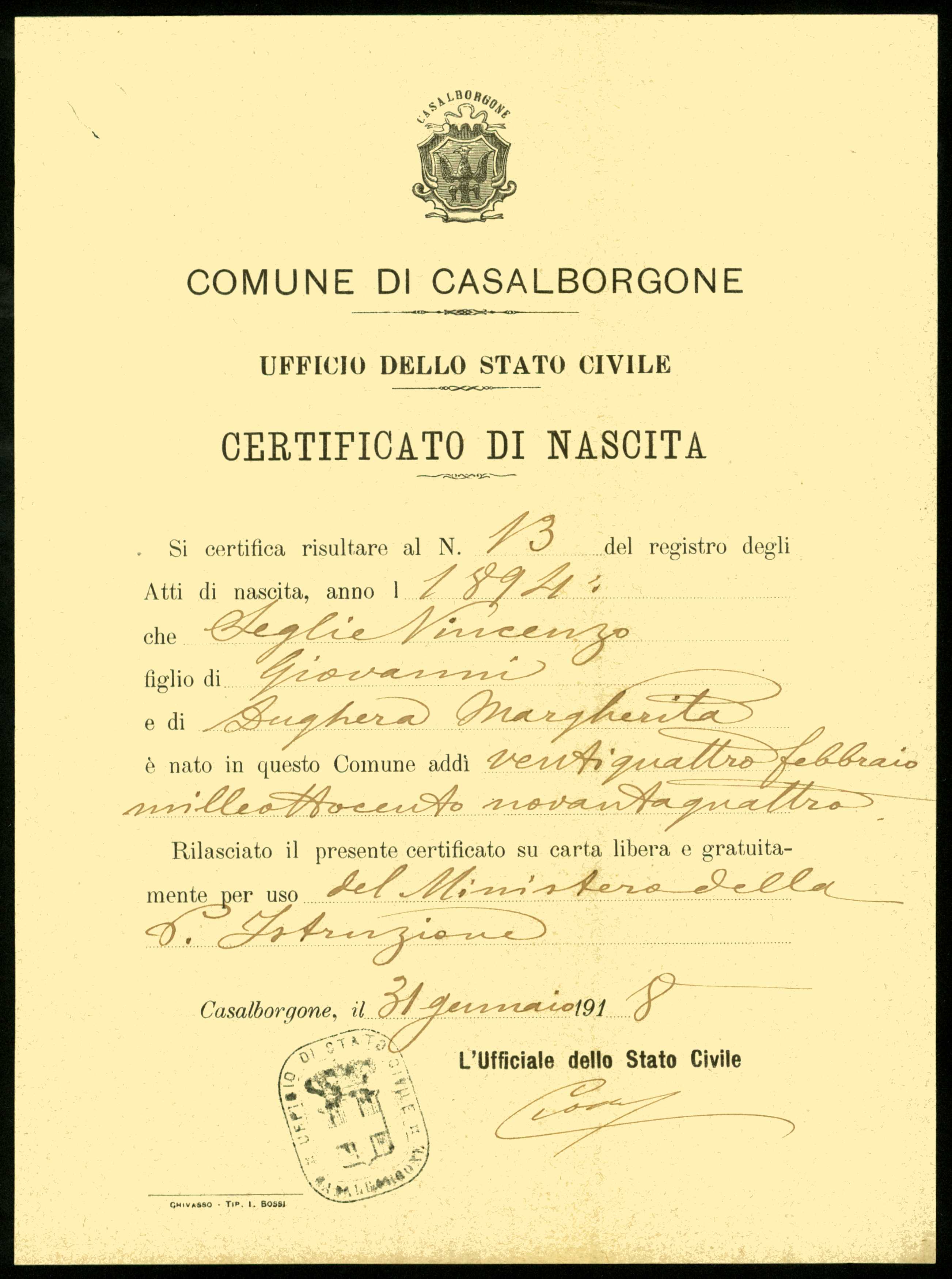 Seglie Vincenzo, Casalborgone