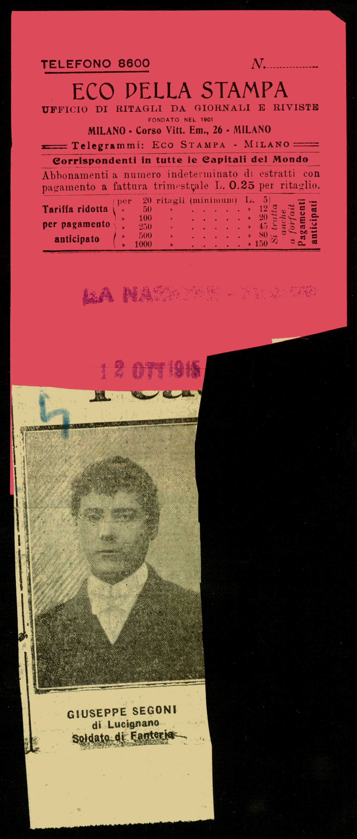 | Percorso: Istituto per la Storia del Risorgimento Italian.../Fondo caduti prima guerra mondiale/Sebastiani Antonio - Selmin Alessandro/Segoni Giuseppe, Lucignano (Arezzo) | |||||||||||