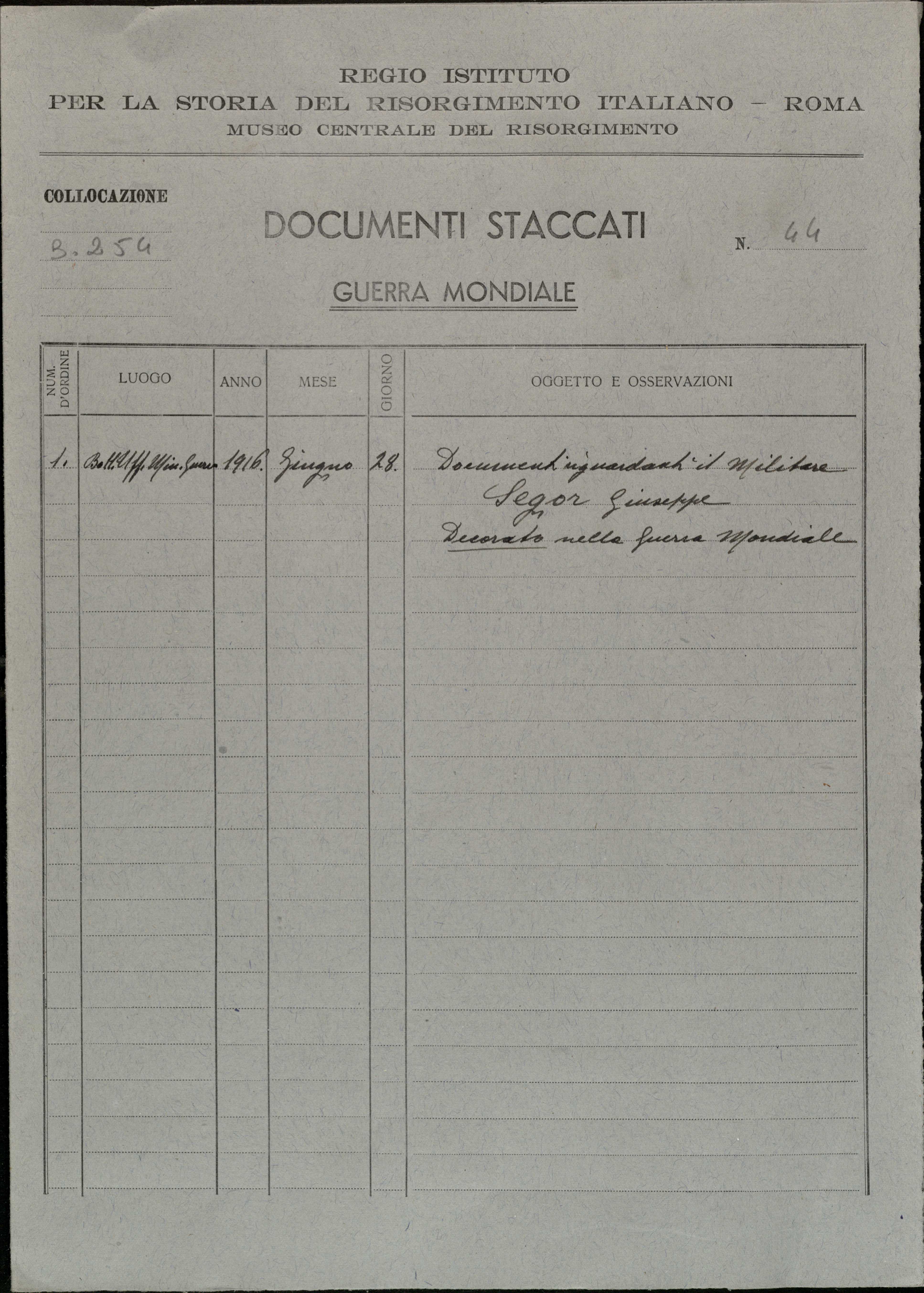 | Percorso: Istituto per la Storia del Risorgimento Italian.../Fondo caduti prima guerra mondiale/Sebastiani Antonio - Selmin Alessandro/Segor Giuseppe, Rheme Notre Dame (Torino) | |||||||||||