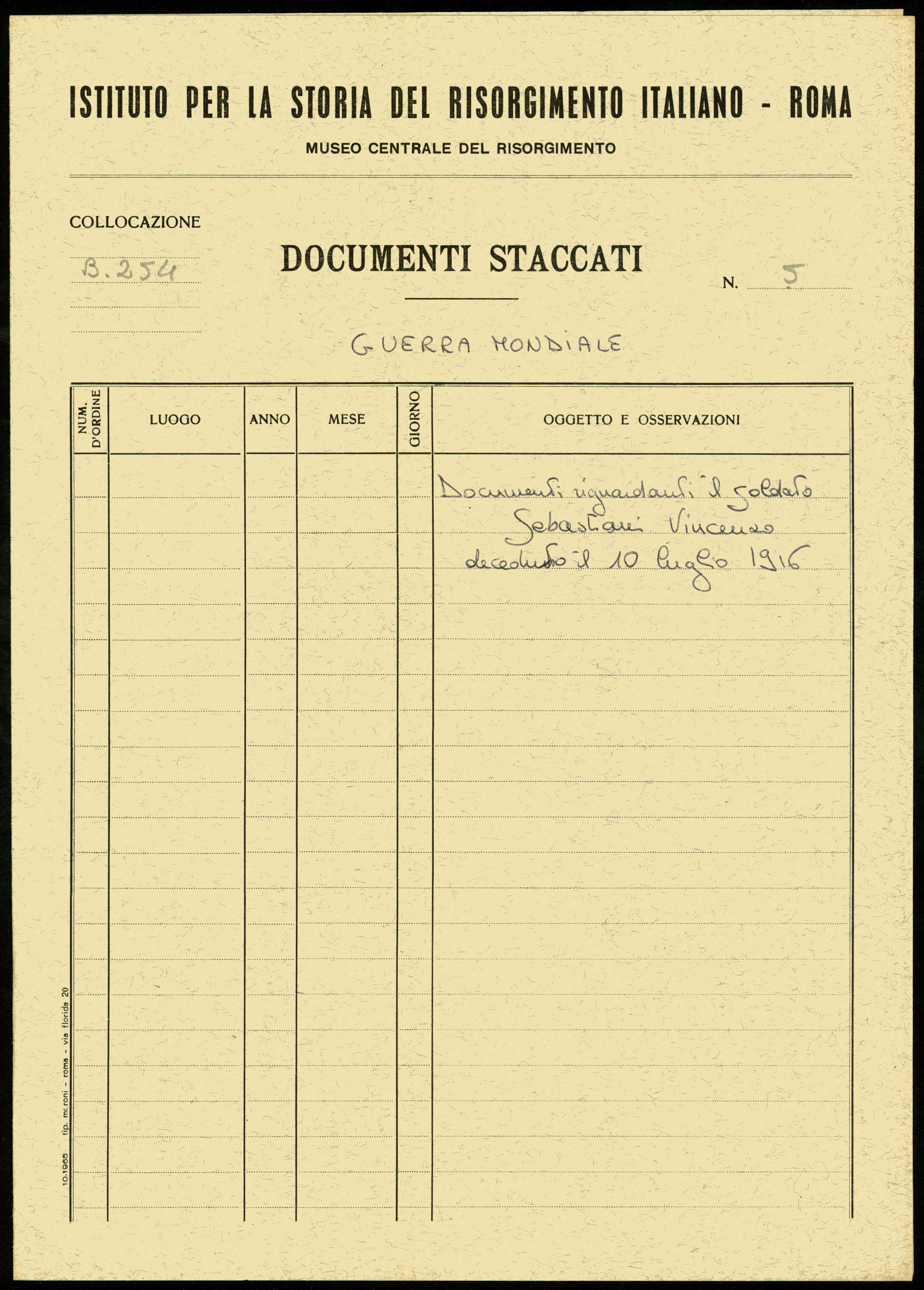 Percorso: Istituto per la Storia del Risorgimento Italian.../Fondo caduti prima guerra mondiale/Sebastiani Antonio - Selmin Alessandro/Sebastiani Vincenzo, Massa d'Albe