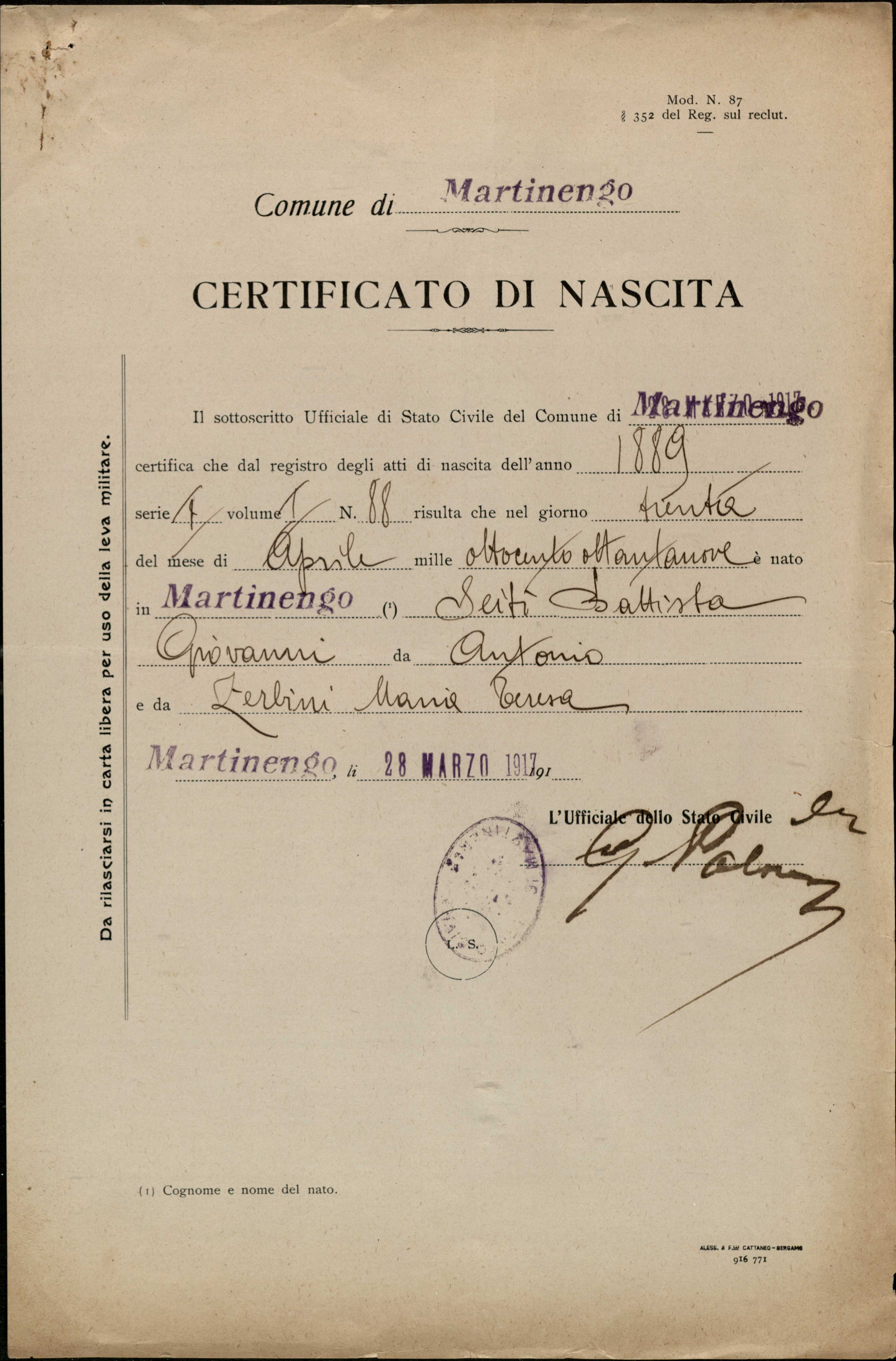 Istituto per la Storia del Risorgimento Italian.../Fondo caduti prima guerra mondiale/Sebastiani Antonio - Selmin Alessandro/Seiti Battista, Martinengo