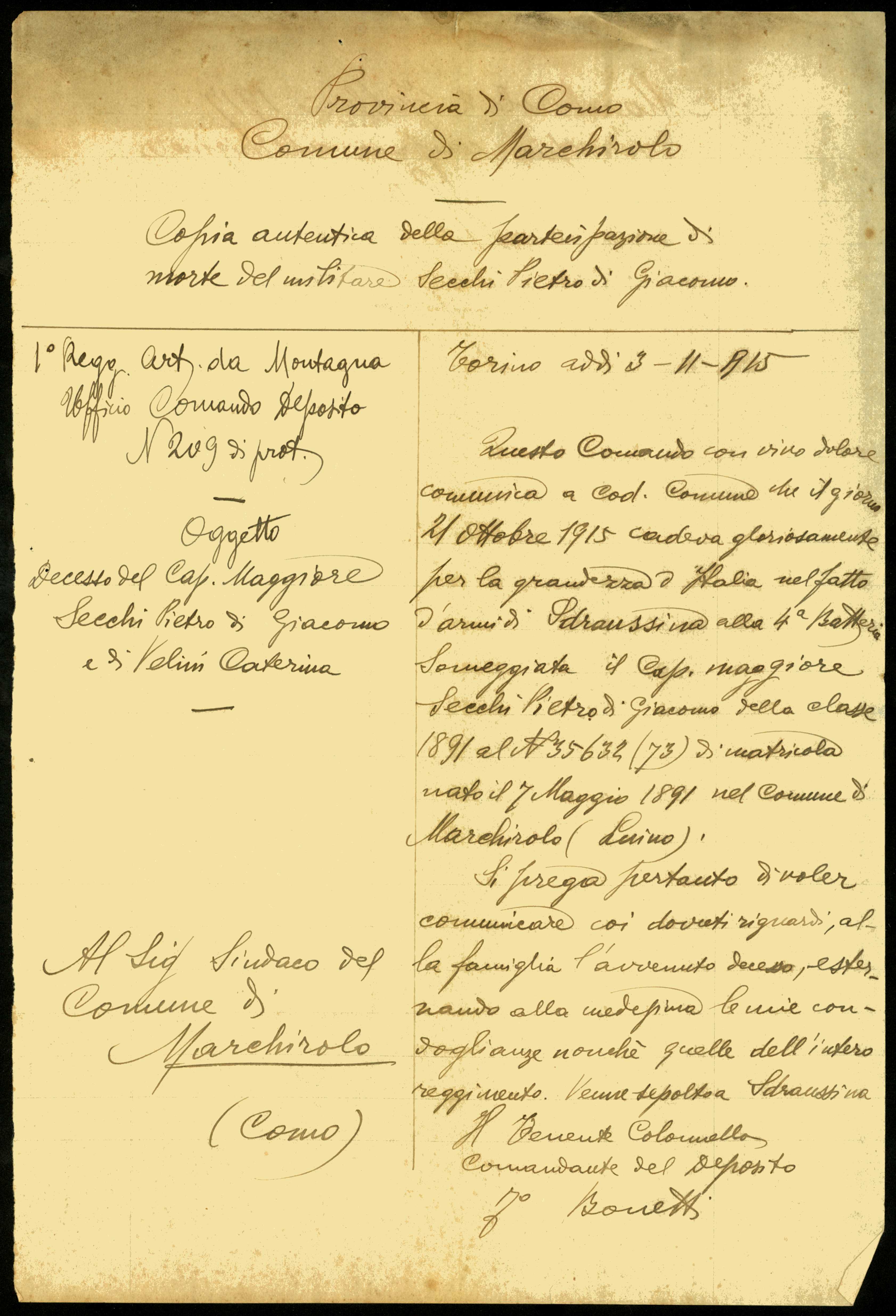Percorso: Istituto per la Storia del Risorgimento Italian.../Fondo caduti prima guerra mondiale/Sebastiani Antonio - Selmin Alessandro/Secchi Pietro, Marchirolo (Como)