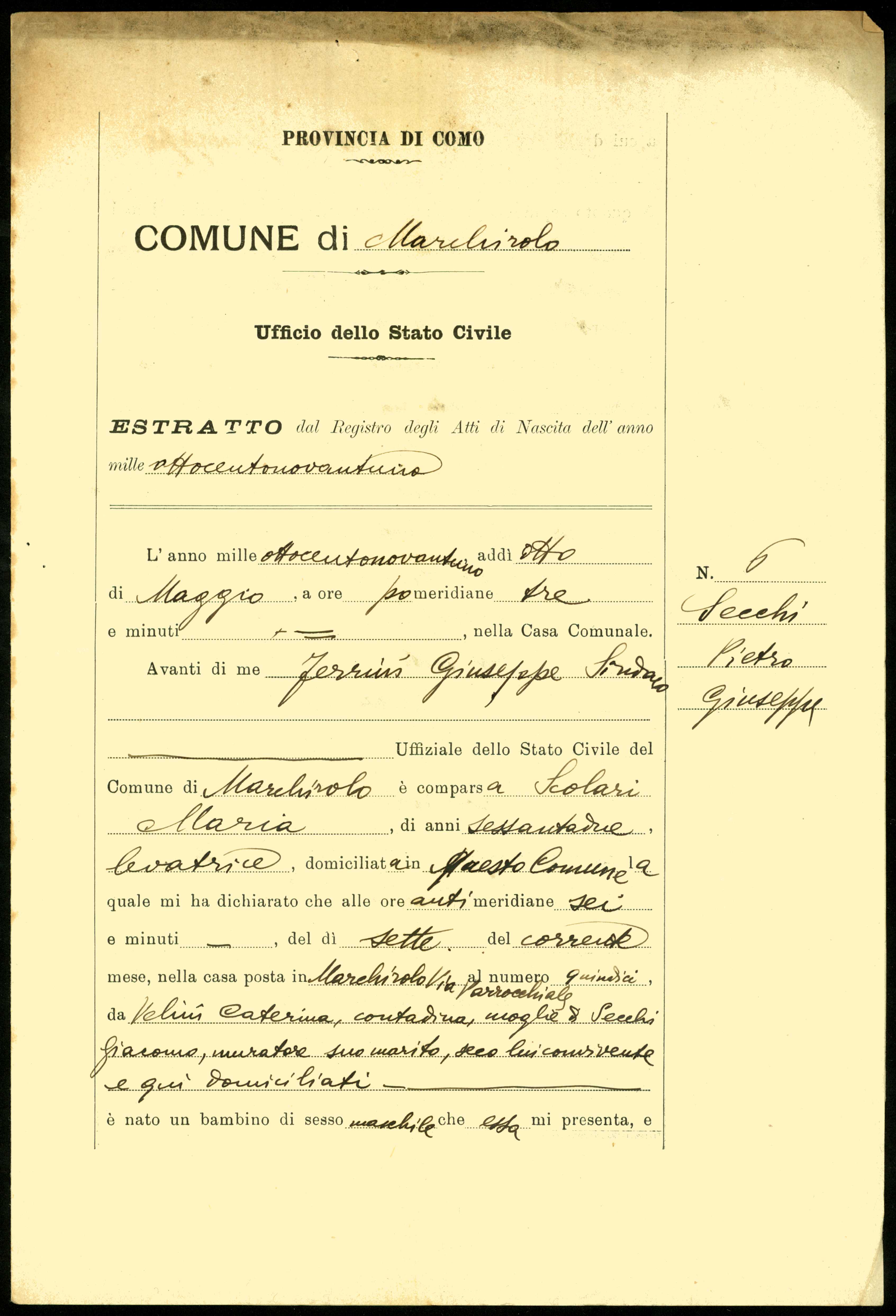 Percorso: Istituto per la Storia del Risorgimento Italian.../Fondo caduti prima guerra mondiale/Sebastiani Antonio - Selmin Alessandro/Secchi Pietro, Marchirolo (Como)