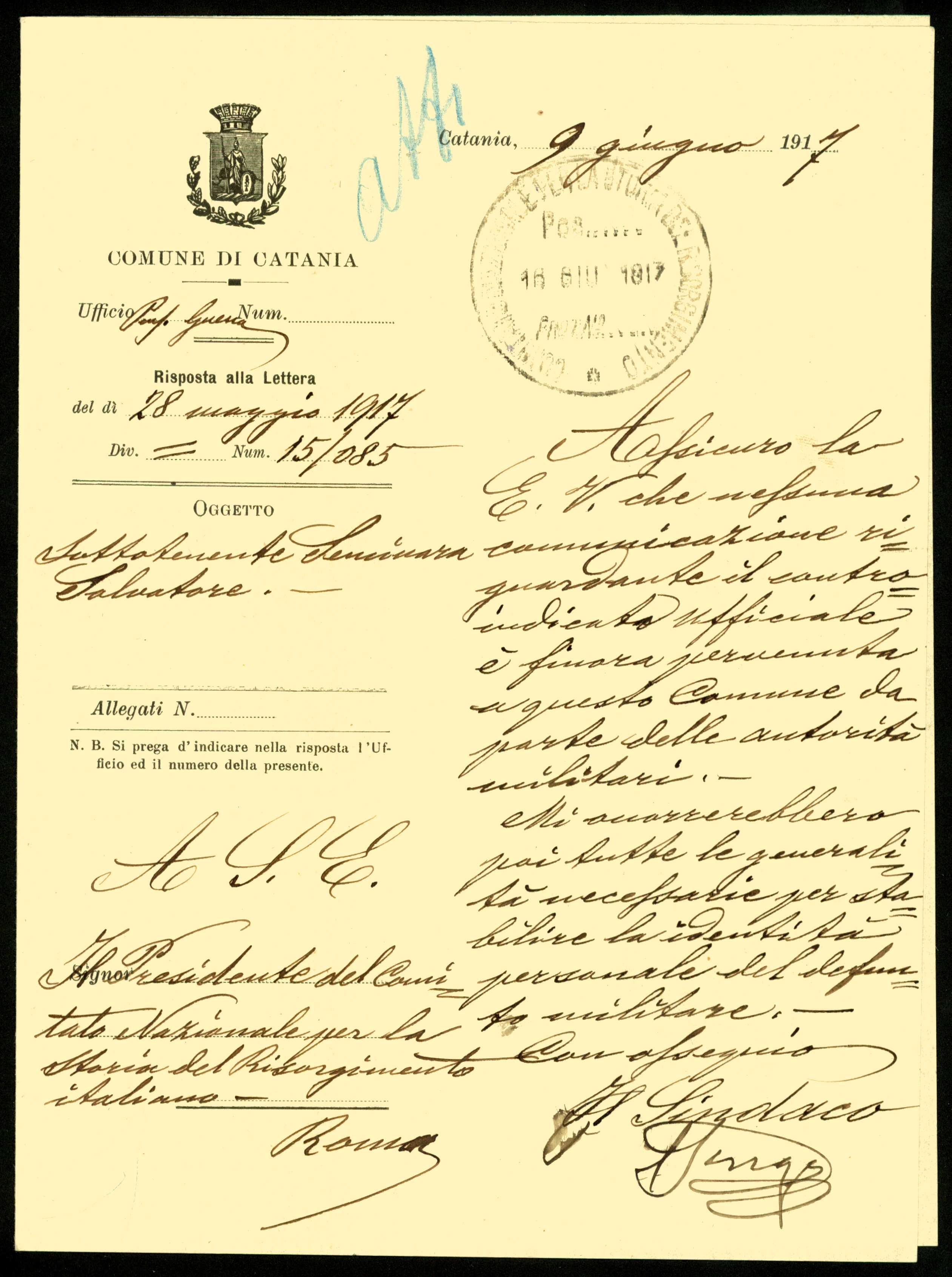 Istituto per la Storia del Risorgimento Italian.../Fondo caduti prima guerra mondiale/Selva Attilio - Serasini Giuseppe/Seminara Salvatore, Catania