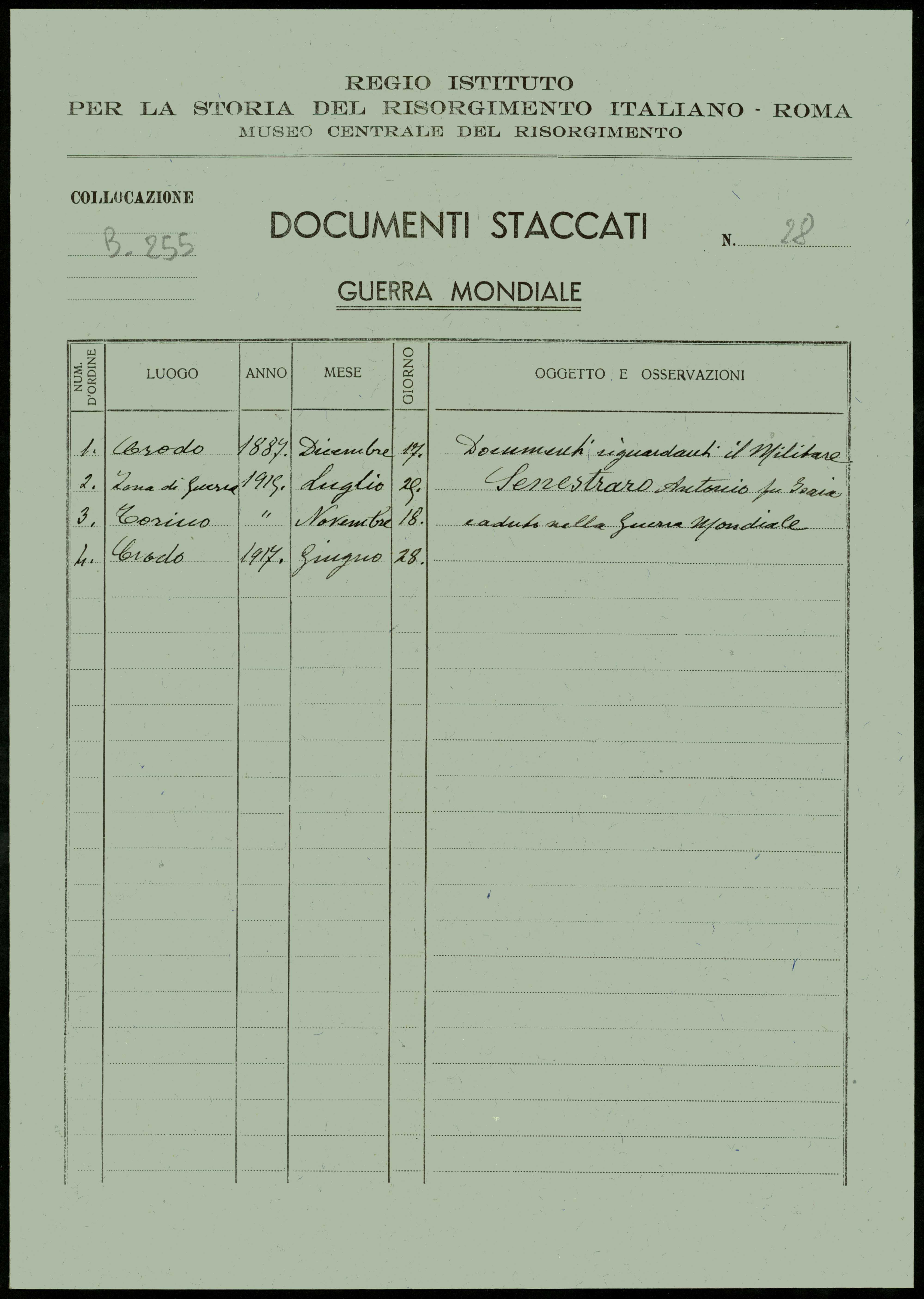 Istituto per la Storia del Risorgimento Italian.../Fondo caduti prima guerra mondiale/Selva Attilio - Serasini Giuseppe/Senestraro Antonio, Crodo (Novara)