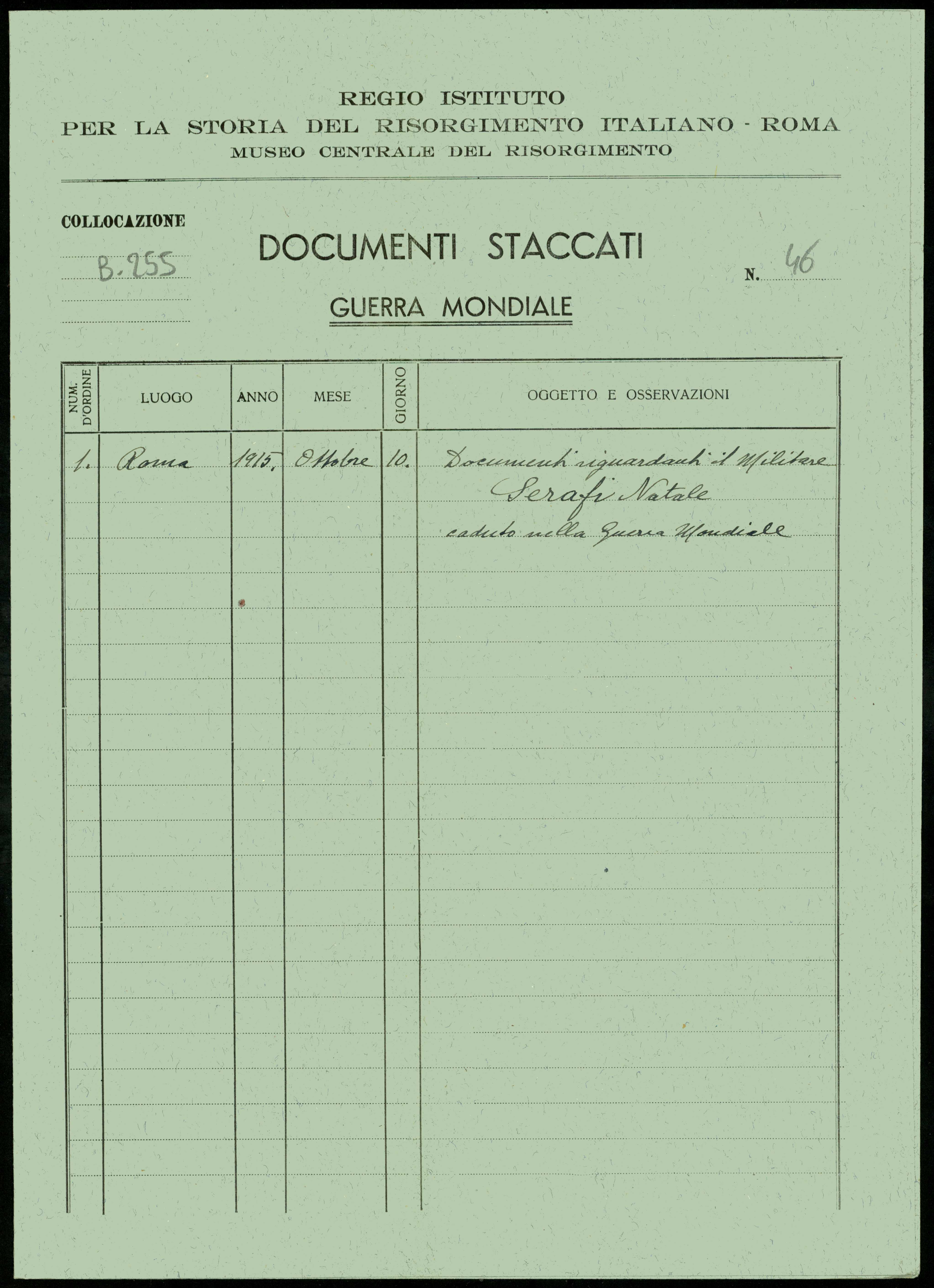 Istituto per la Storia del Risorgimento Italian.../Fondo caduti prima guerra mondiale/Selva Attilio - Serasini Giuseppe/Serafi Natale, Velletri (Roma)