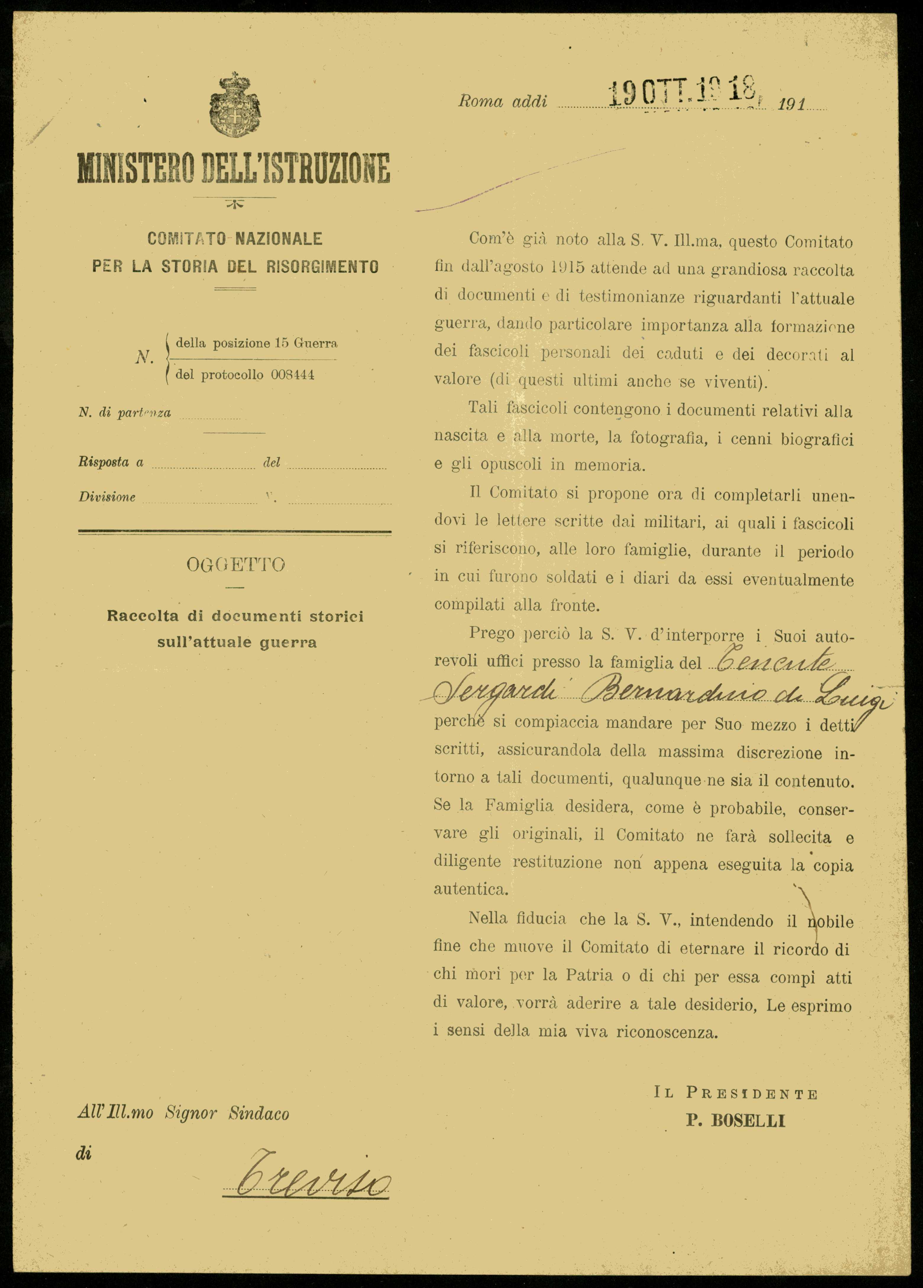 Istituto per la Storia del Risorgimento Italian.../Fondo caduti prima guerra mondiale/Serbini Mario - Serravallo Jacopo /Sergardi Bernardino