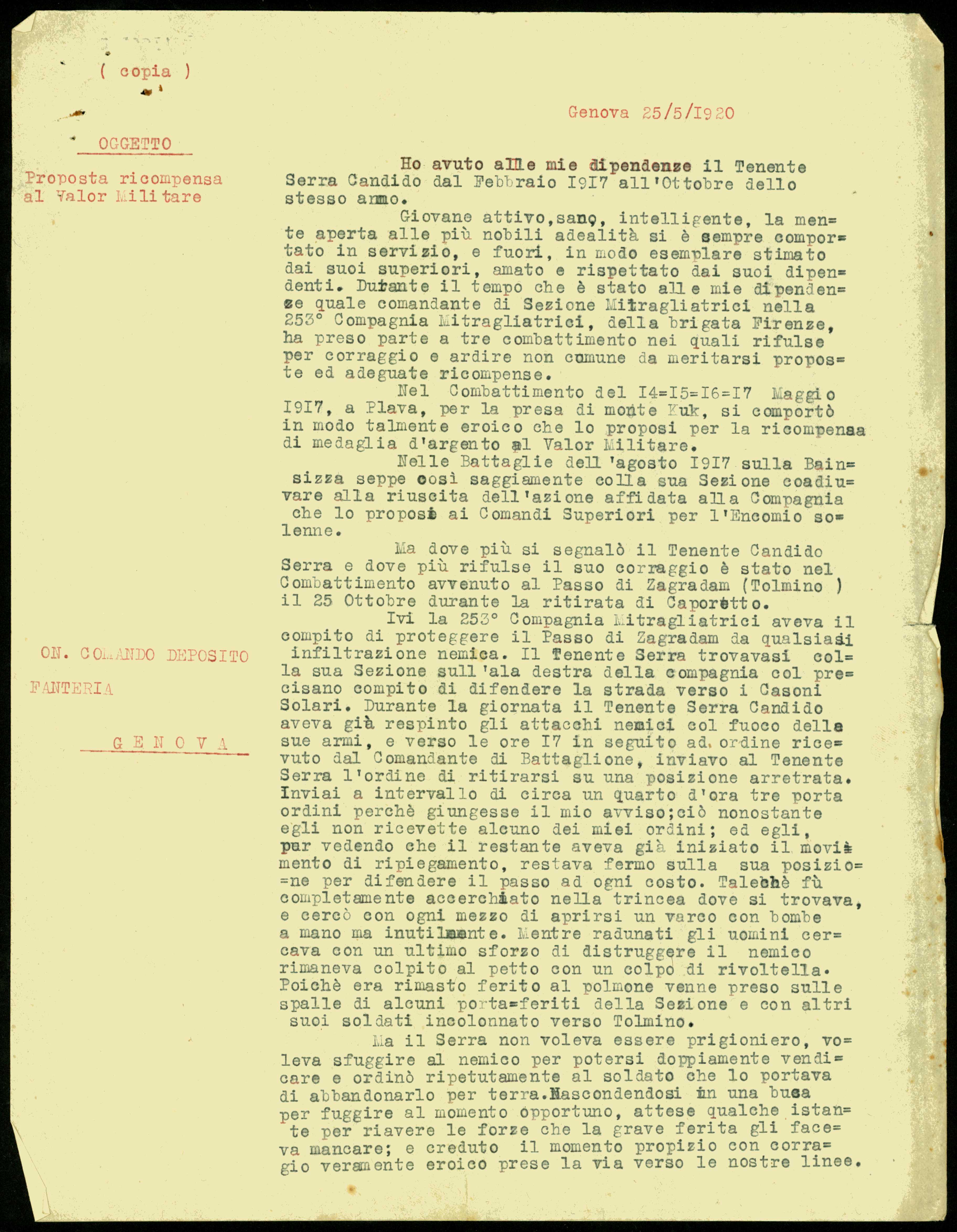 Istituto per la Storia del Risorgimento Italian.../Fondo caduti prima guerra mondiale/Serbini Mario - Serravallo Jacopo /Serra Candido