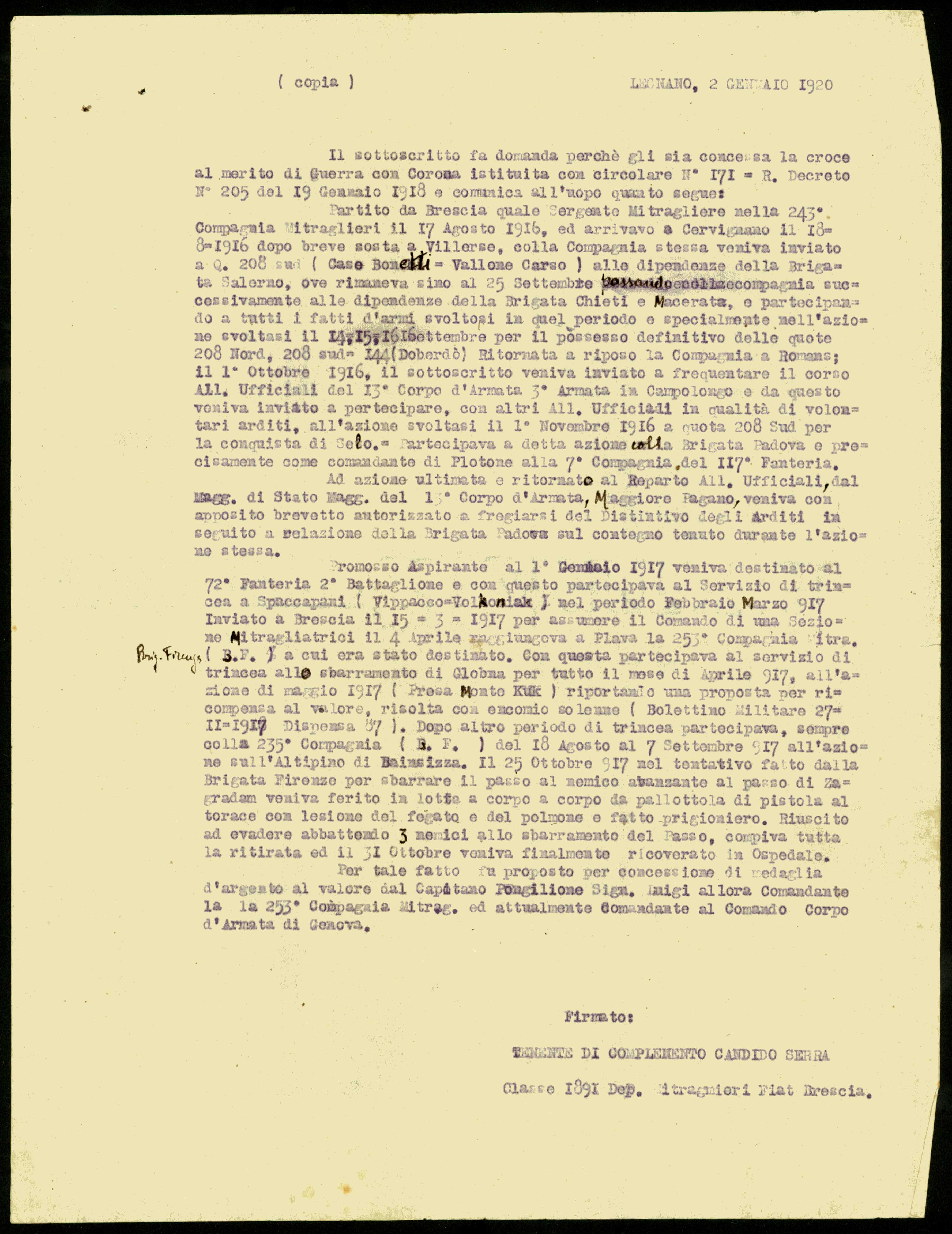 Istituto per la Storia del Risorgimento Italian.../Fondo caduti prima guerra mondiale/Serbini Mario - Serravallo Jacopo /Serra Candido