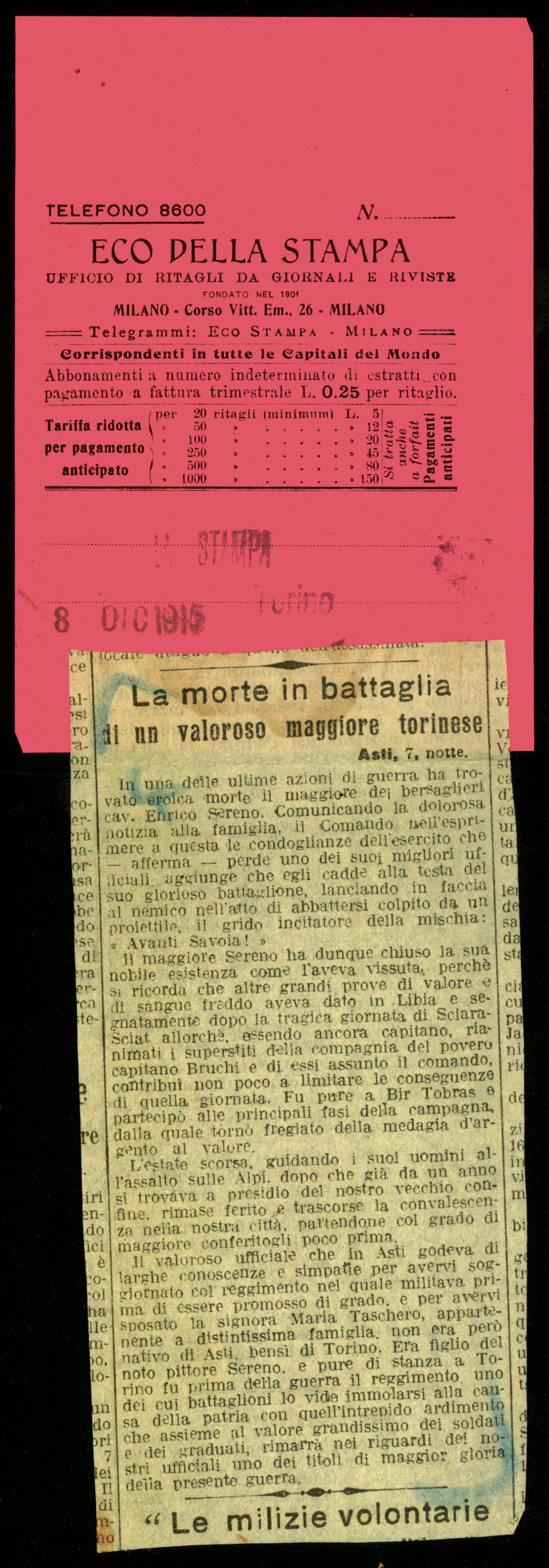 Istituto per la Storia del Risorgimento Italian.../Fondo caduti prima guerra mondiale/Serbini Mario - Serravallo Jacopo /Sereno Enrico, Torino