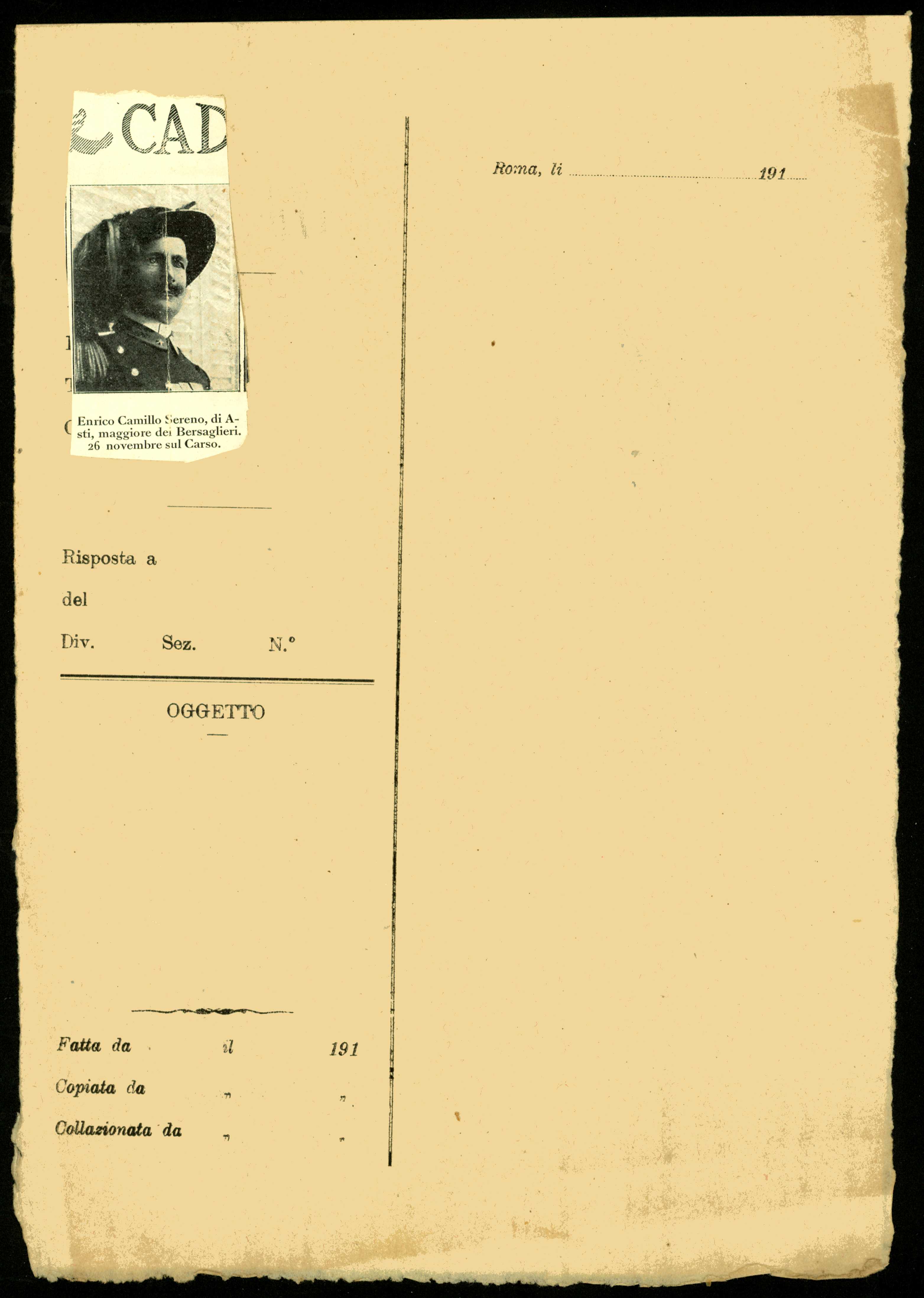 Istituto per la Storia del Risorgimento Italian.../Fondo caduti prima guerra mondiale/Serbini Mario - Serravallo Jacopo /Sereno Enrico, Torino