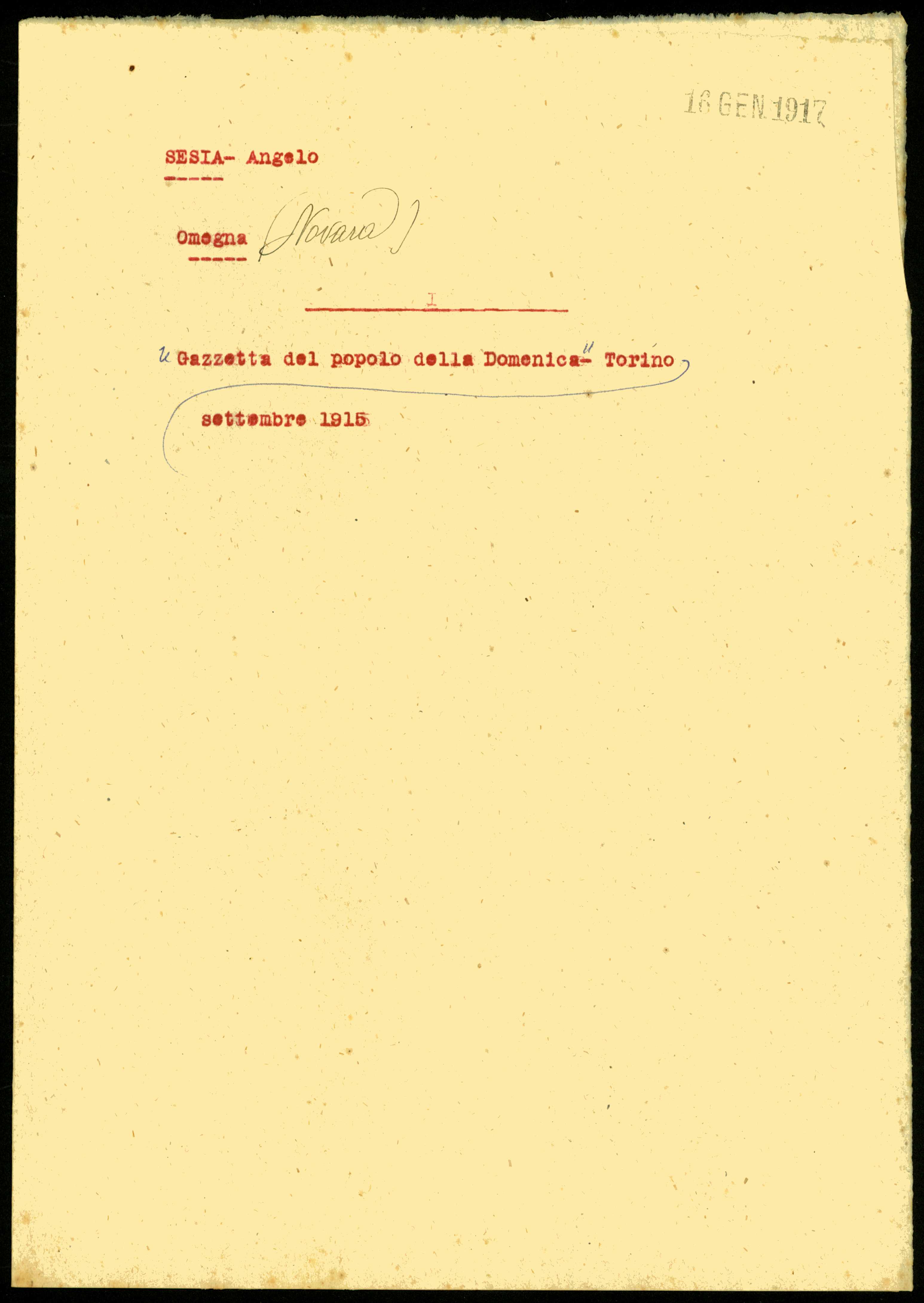 Istituto per la Storia del Risorgimento Italian.../Fondo caduti prima guerra mondiale/Serre Pietro - Sfriso Bartolomeo/Sesia Angelo, Omegna (Novara)