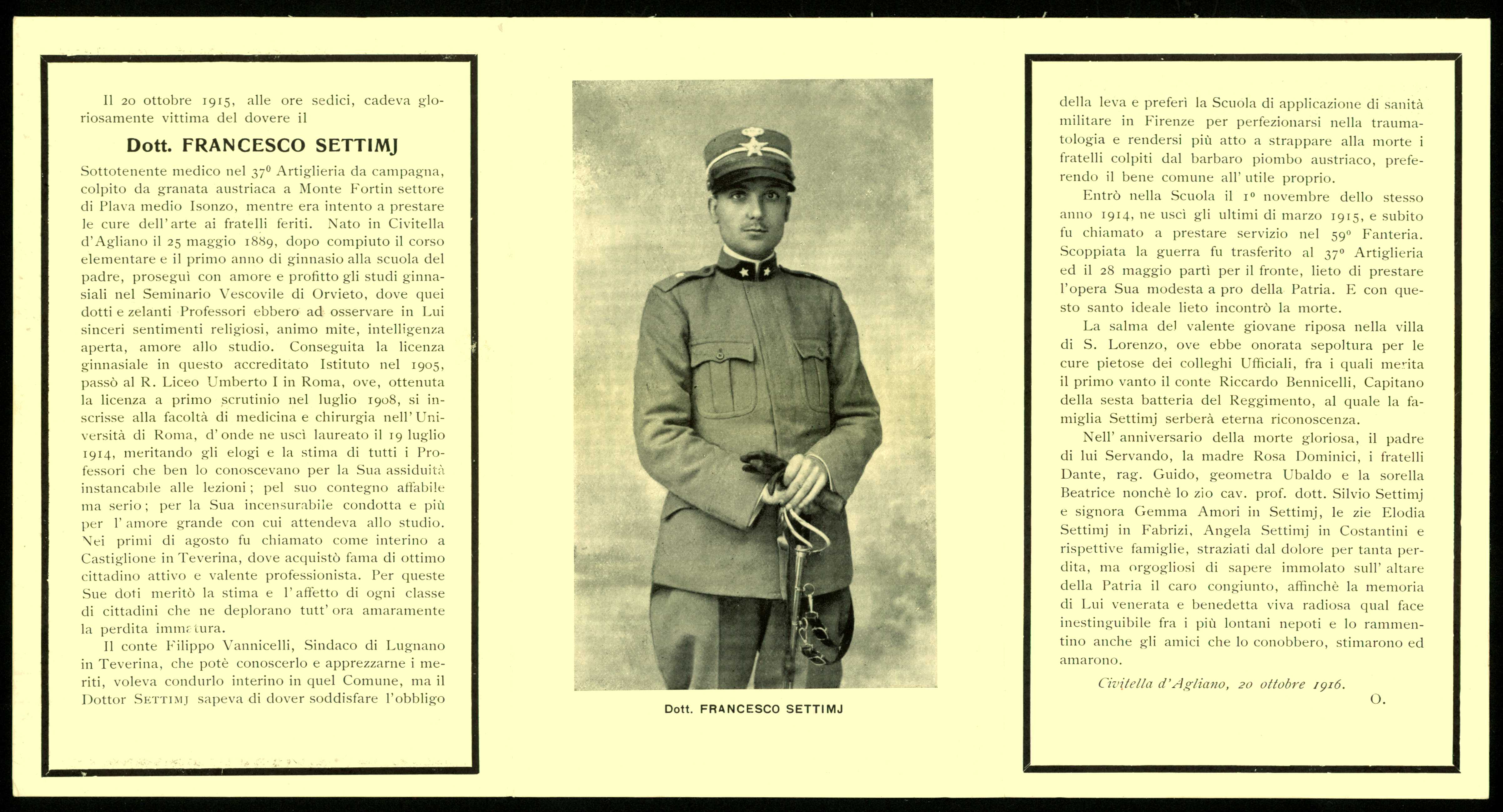 Percorso: Istituto per la Storia del Risorgimento Italian.../Fondo caduti prima guerra mondiale/Serre Pietro - Sfriso Bartolomeo/Settimj Francesco, Civitella d'Agliano (Roma)