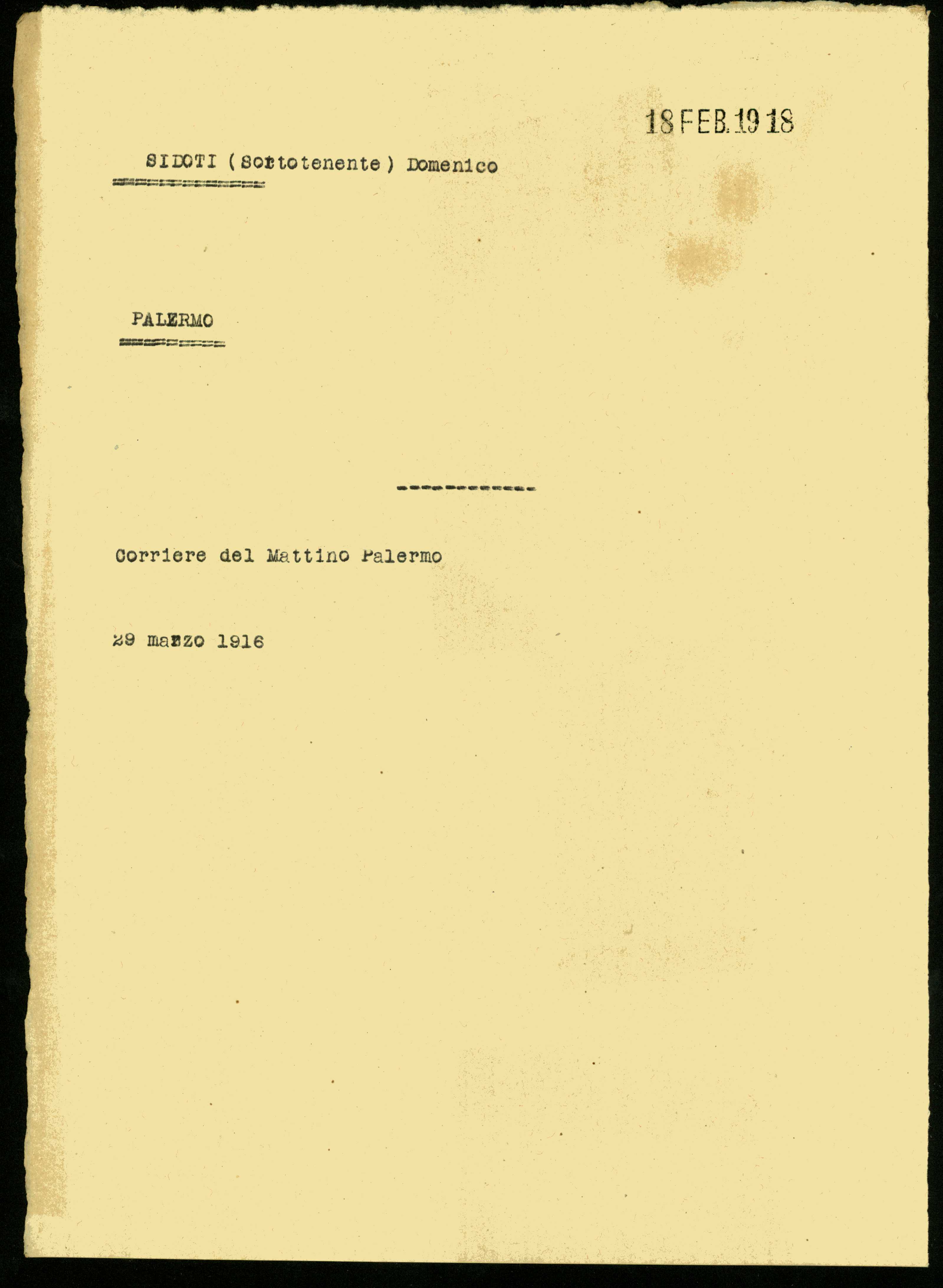 Istituto per la Storia del Risorgimento Italian.../Fondo caduti prima guerra mondiale/Sgammini Luigi - Sigurtà Giuseppe/Sidoti Domenico, Palermo