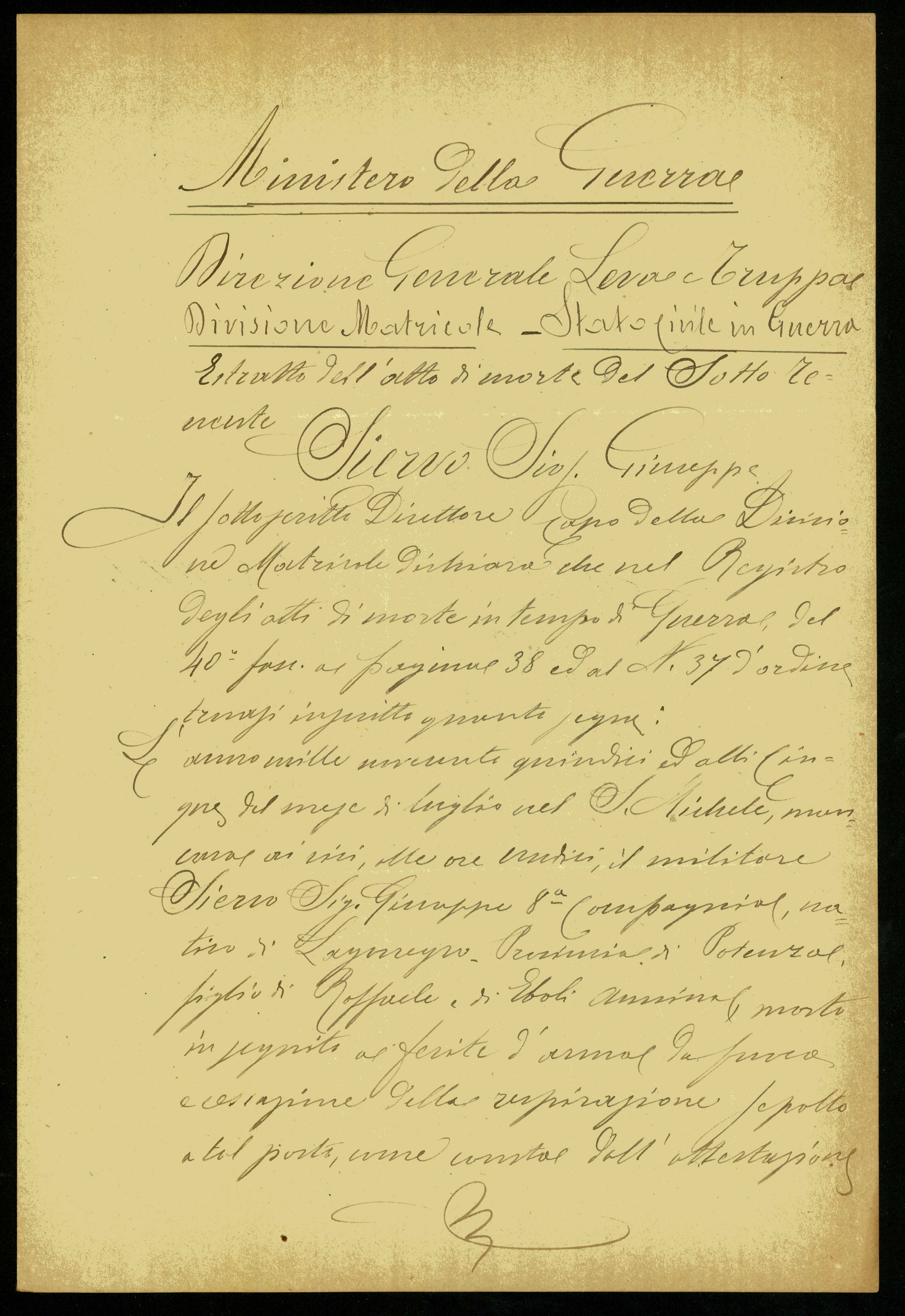 | Percorso: Istituto per la Storia del Risorgimento Italian.../Fondo caduti prima guerra mondiale/Sgammini Luigi - Sigurtà Giuseppe/Siervo Giuseppe, Lagonegro (Potenza) | |||||||||||