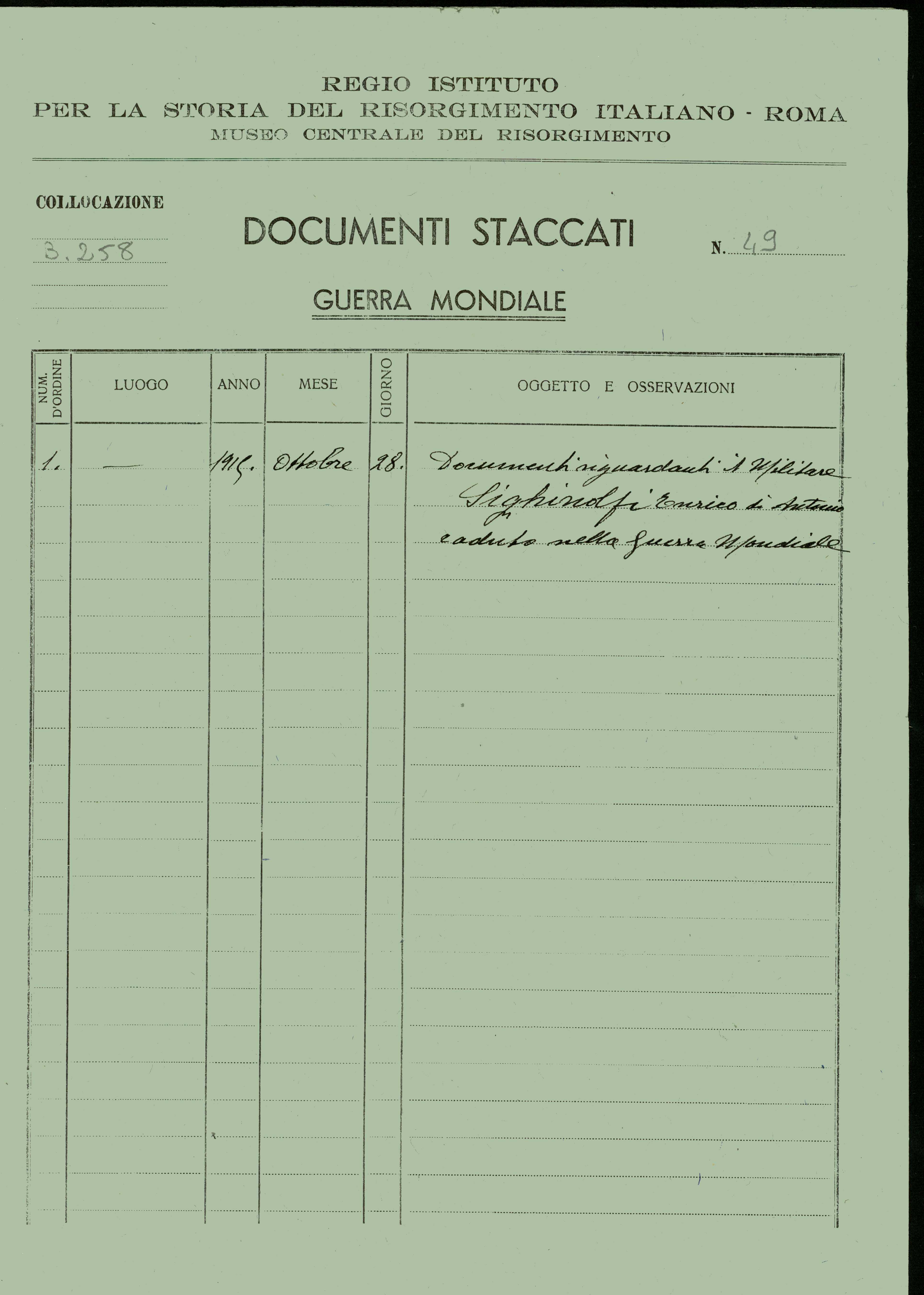 3.1.1.2. Segnatura corrente:   (Caduti 258/49) 49 (1)