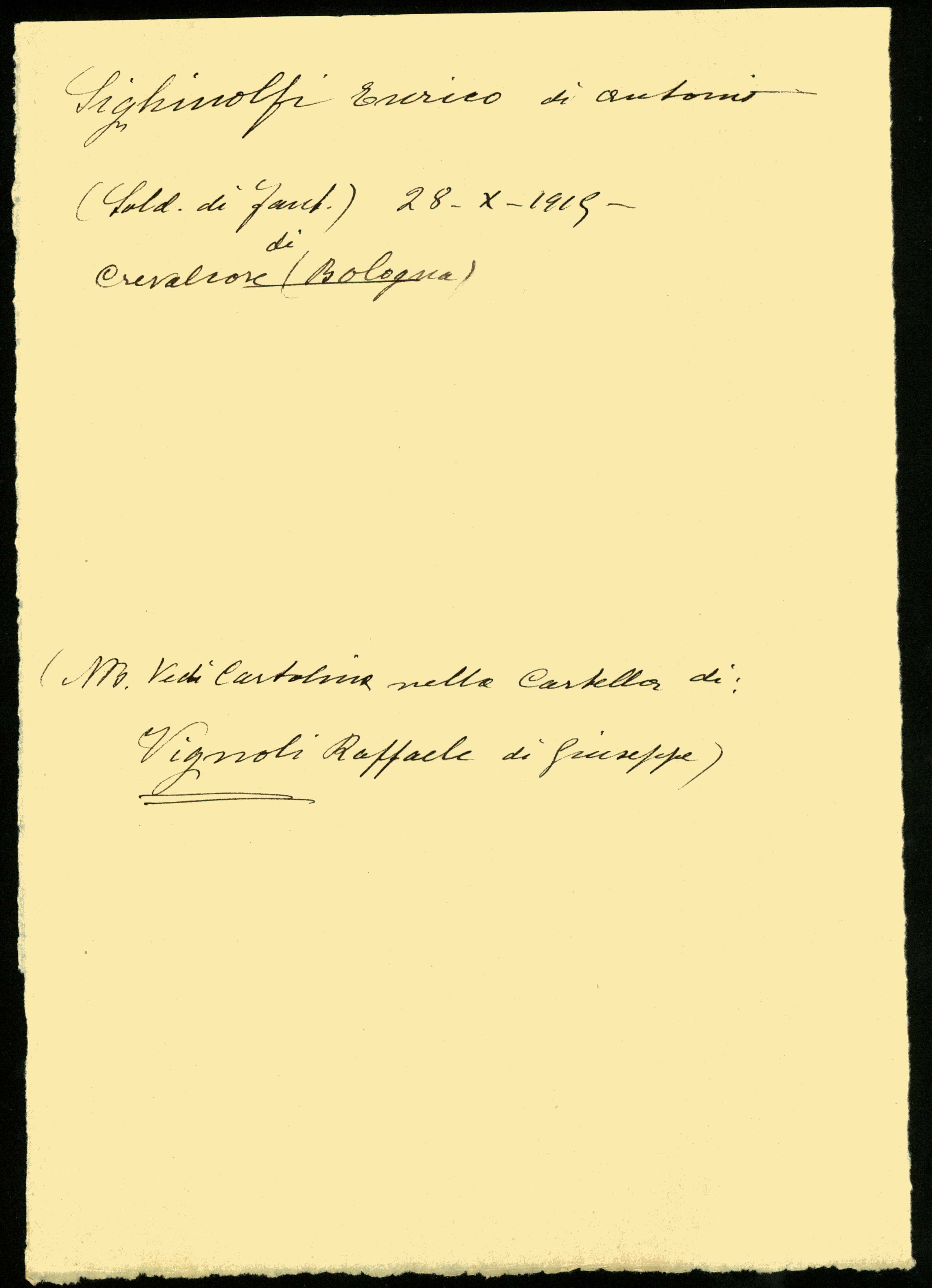 | Percorso: Istituto per la Storia del Risorgimento Italian.../Fondo caduti prima guerra mondiale/Sgammini Luigi - Sigurtà Giuseppe/Sighinolfi Enrico, Crevalcore (Bologna) | |||||||||||