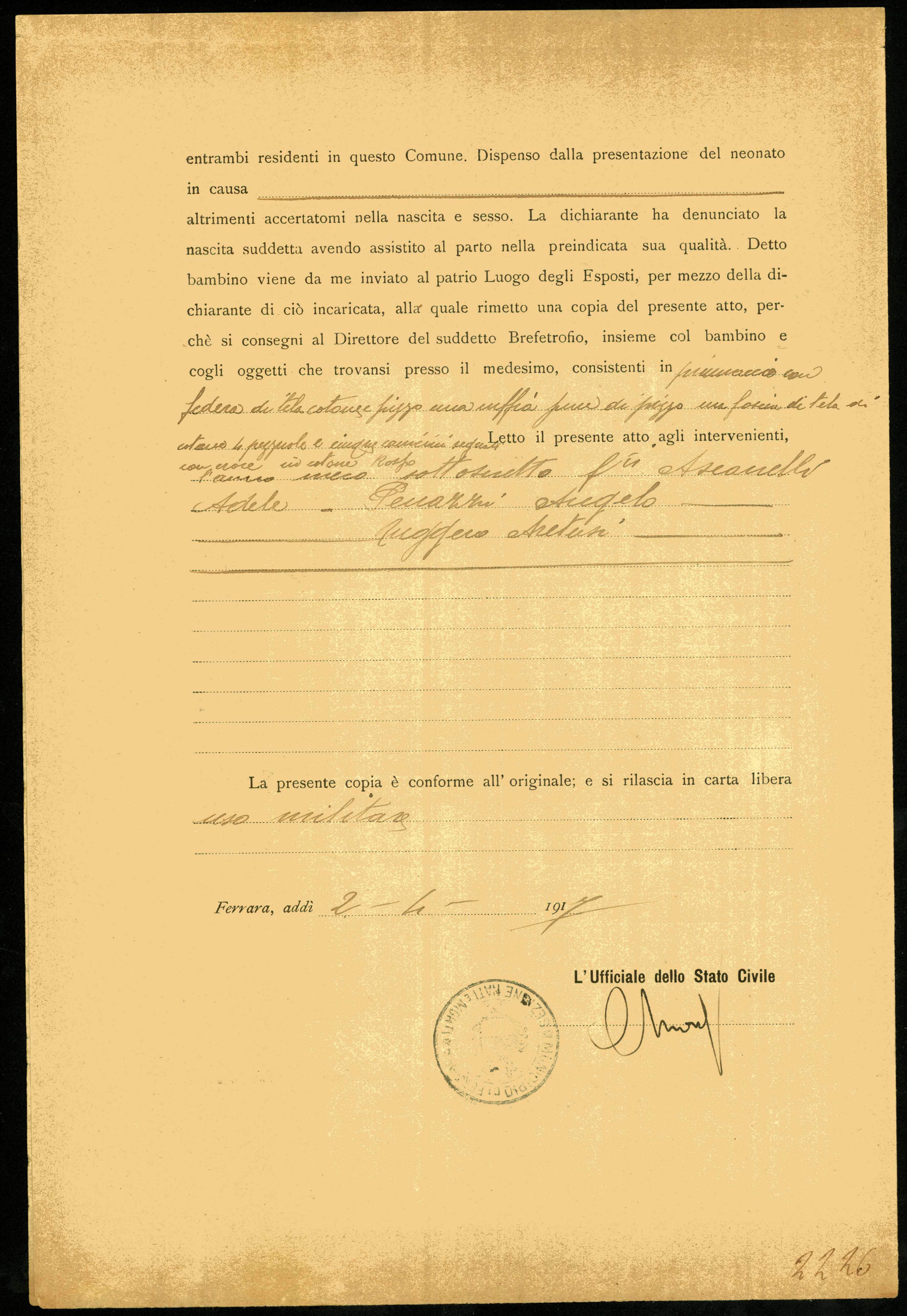 Istituto per la Storia del Risorgimento Italian.../Fondo caduti prima guerra mondiale/Sgammini Luigi - Sigurtà Giuseppe/Signani Vittorio, Porotto (Ferrara)
