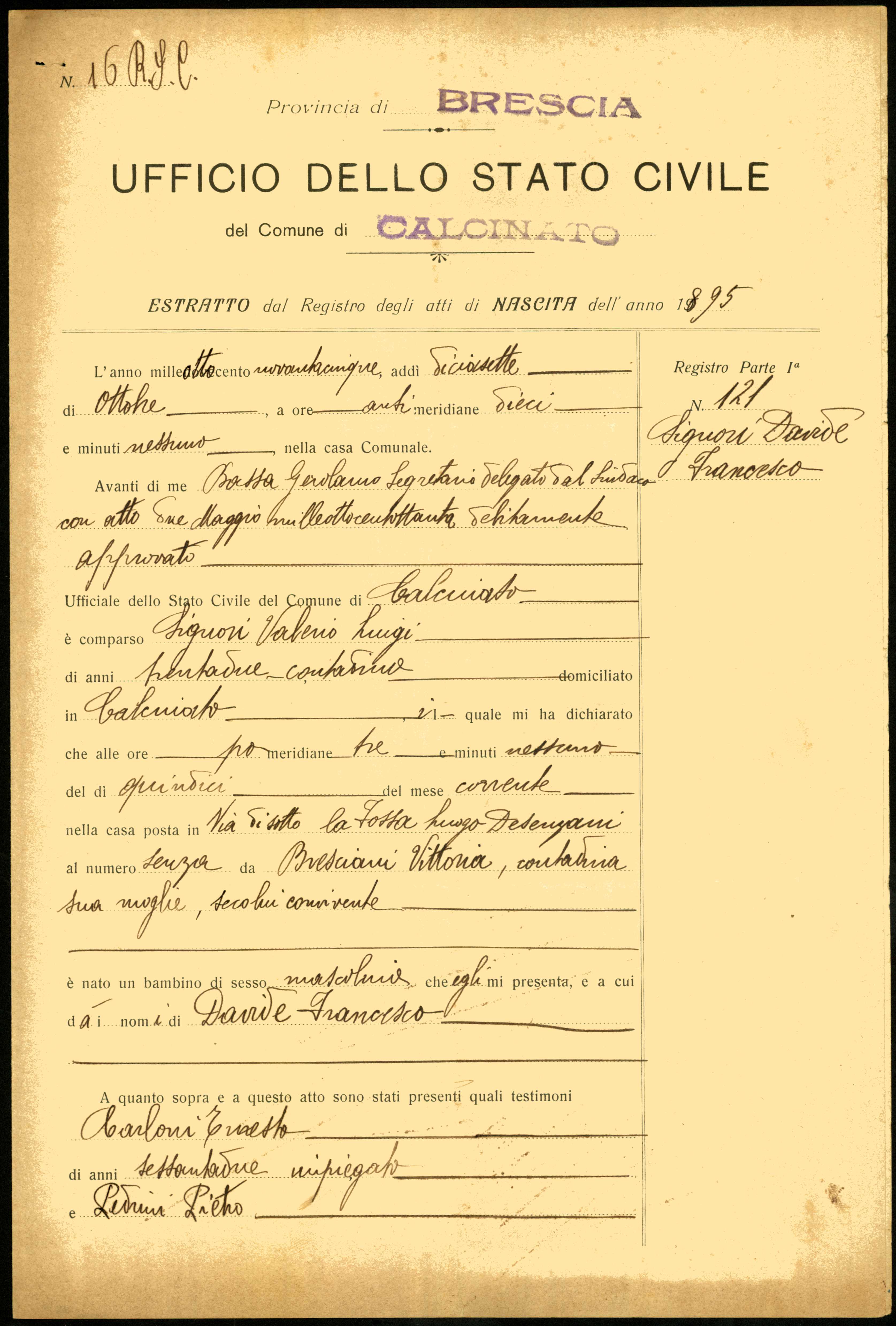 Istituto per la Storia del Risorgimento Italian.../Fondo caduti prima guerra mondiale/Sgammini Luigi - Sigurtà Giuseppe/Signori Davide, Calcinato (Brescia)