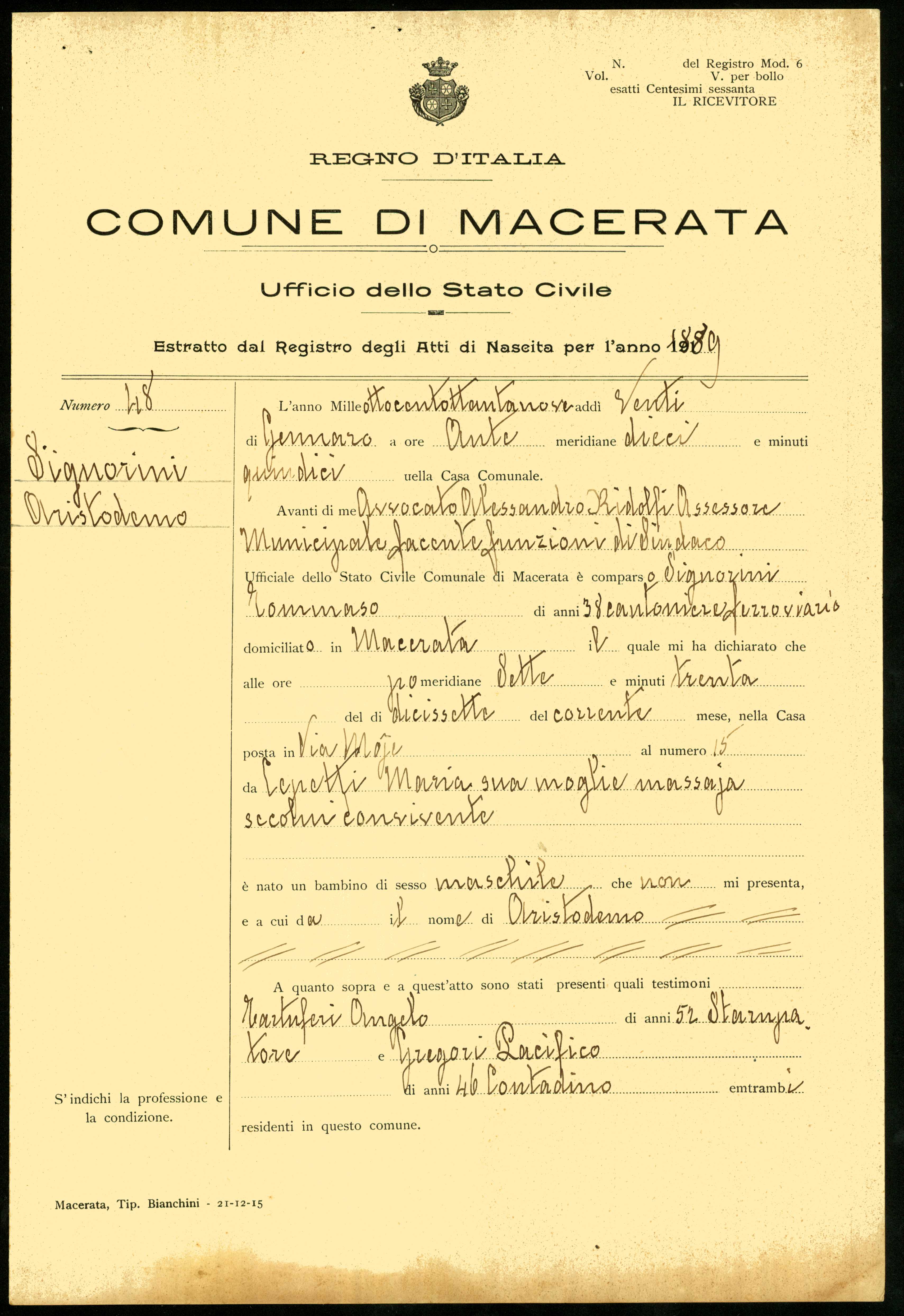 Signorini Aristodemo, Macerata