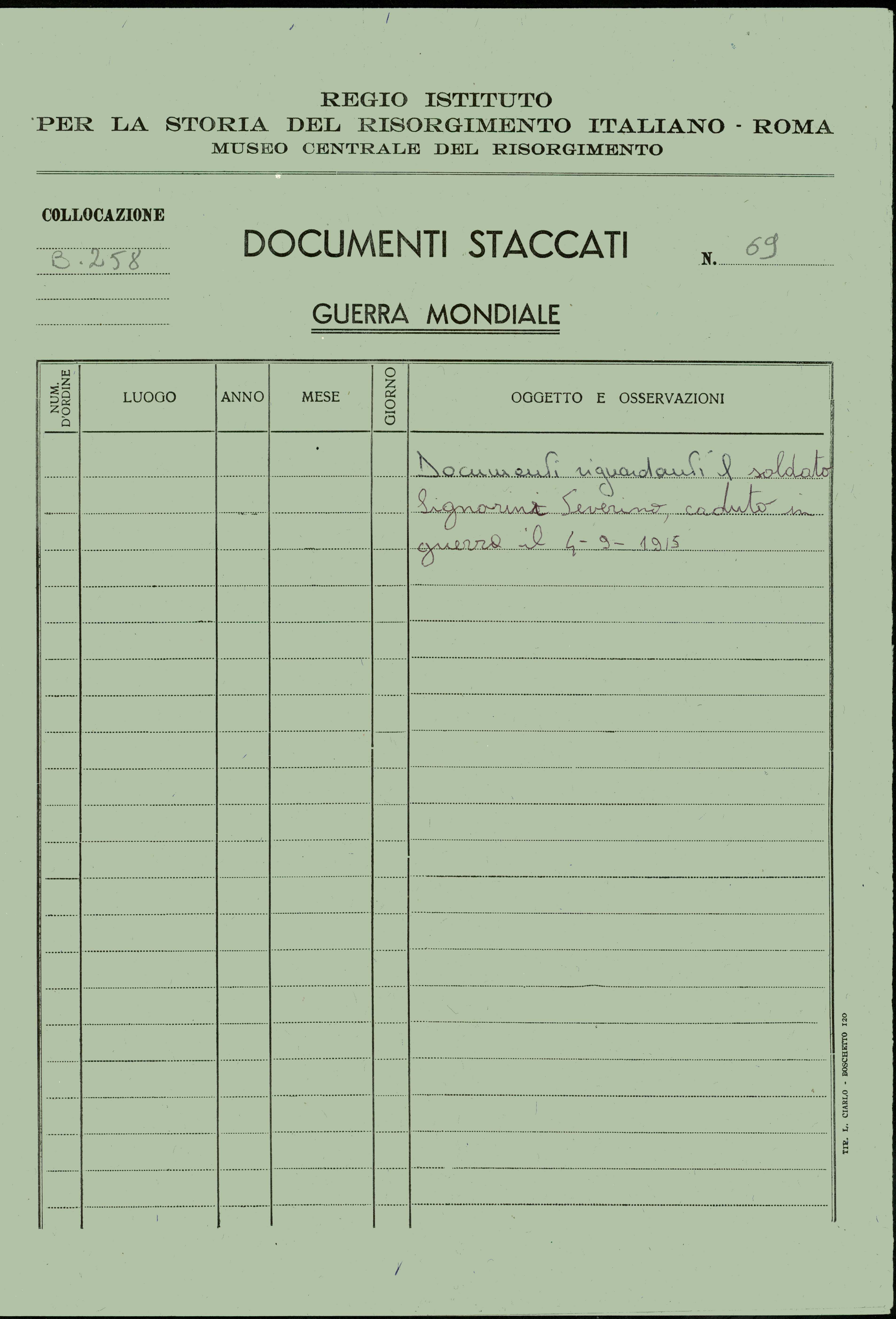 3.1.1.2. Segnatura corrente:   (Caduti 258/69) 69 (1)