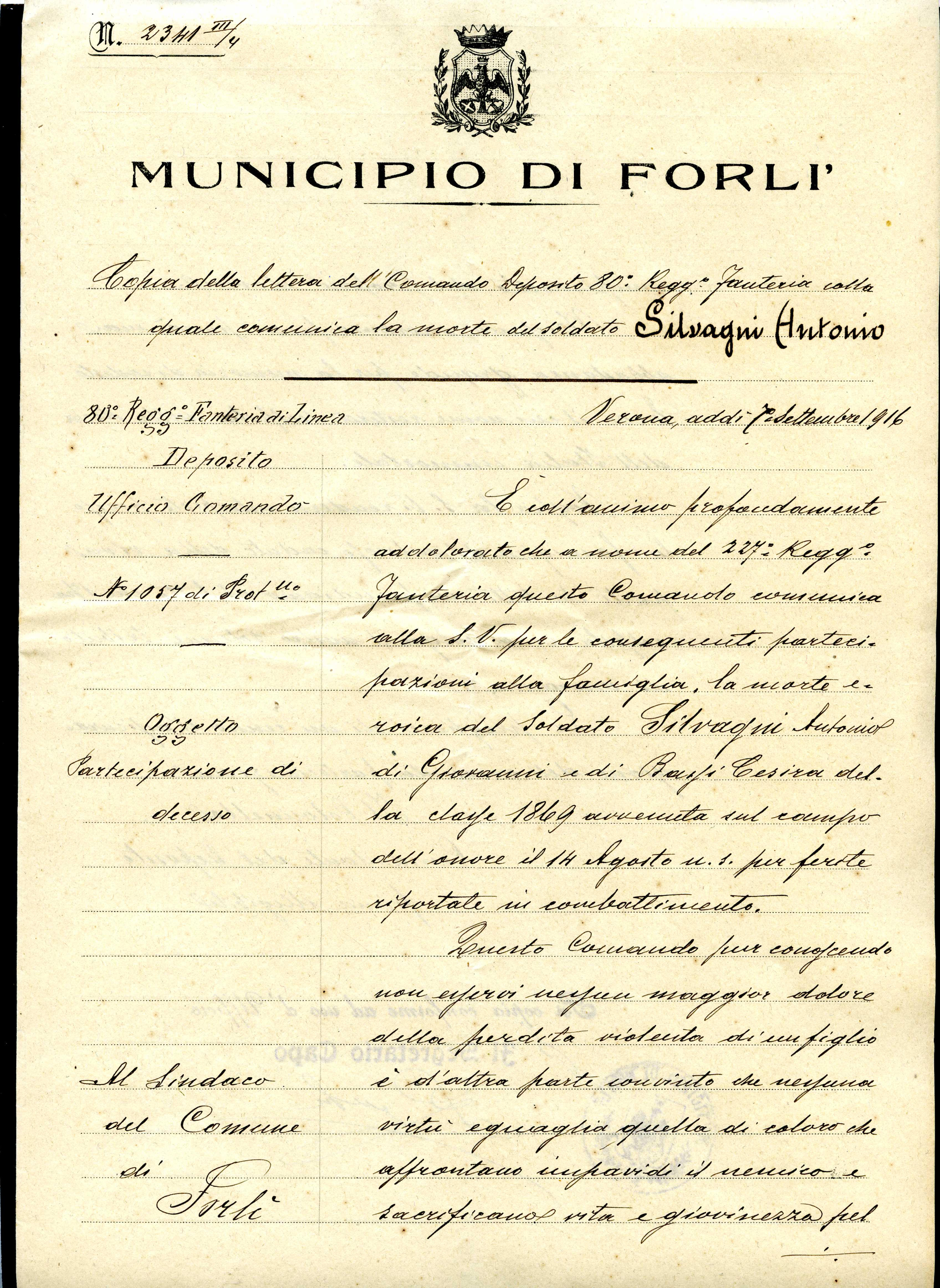 Istituto per la Storia del Risorgimento Italian.../Fondo caduti prima guerra mondiale/Siletti Giovanni - Simonini Francesco/Silvagni Antonio, Forlė