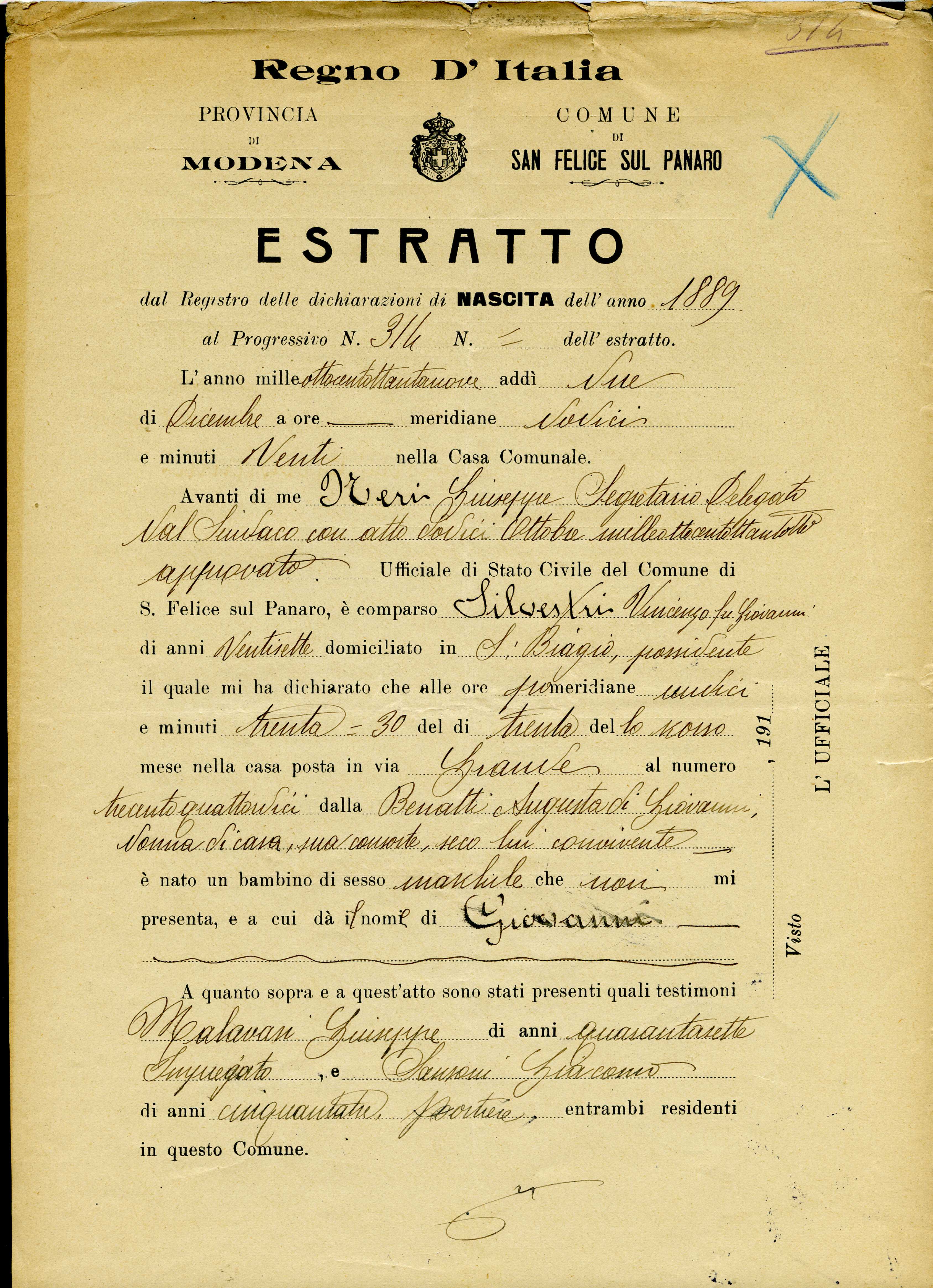 Silvestri Giovanni, San Felice sul Panaro (Modena) |
