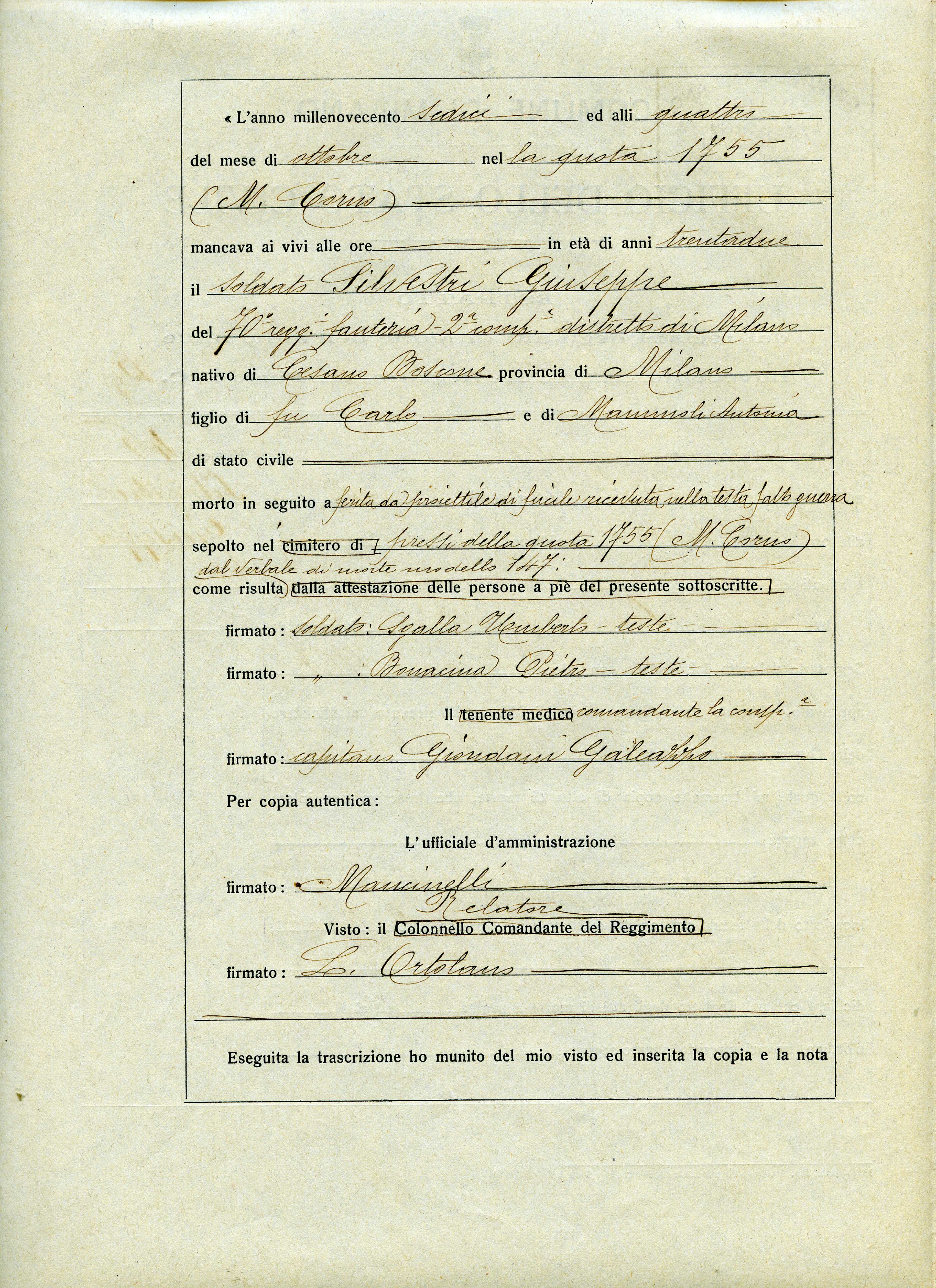 Percorso: Istituto per la Storia del Risorgimento Italian.../Fondo caduti prima guerra mondiale/Siletti Giovanni - Simonini Francesco/Silvestri Giuseppe, Cesano Boscone (Milano)