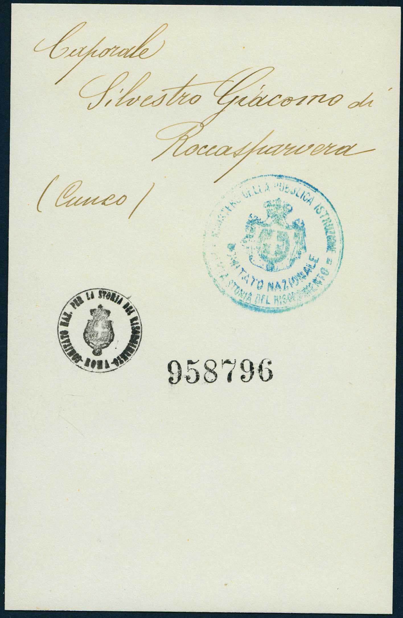 Percorso: Istituto per la Storia del Risorgimento Italian.../Fondo caduti prima guerra mondiale/Siletti Giovanni - Simonini Francesco/Silvestro Giacomo, Roccasparviera (Cuneo)