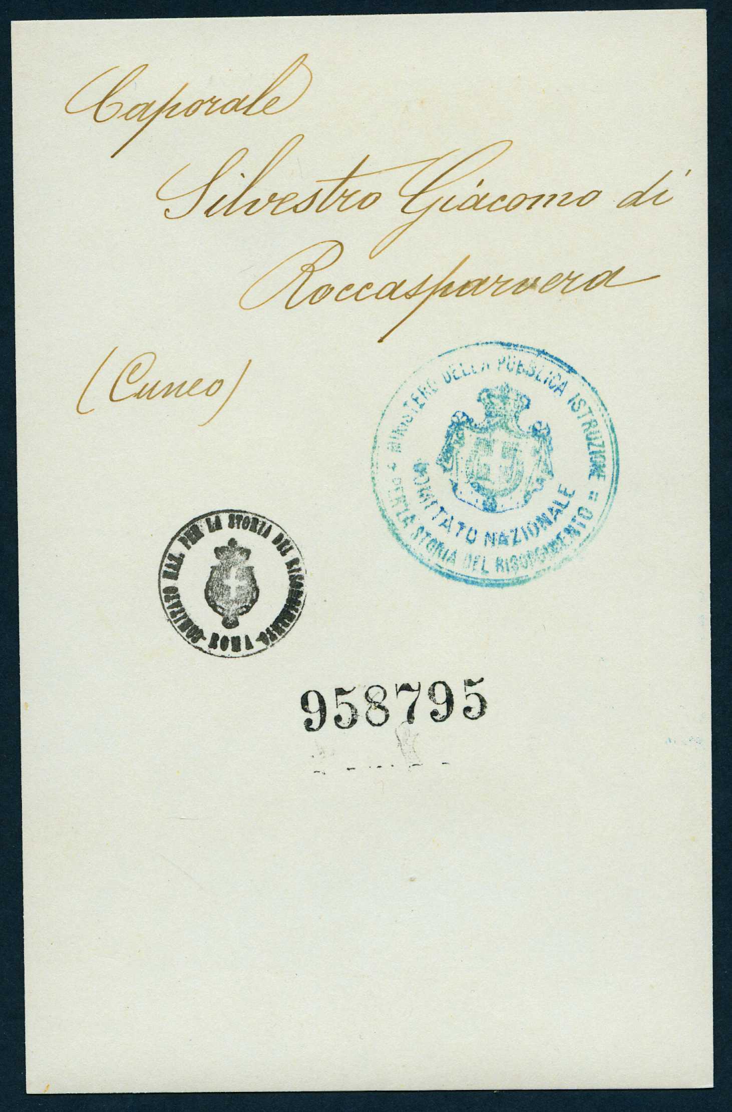 Percorso: Istituto per la Storia del Risorgimento Italian.../Fondo caduti prima guerra mondiale/Siletti Giovanni - Simonini Francesco/Silvestro Giacomo, Roccasparviera (Cuneo)