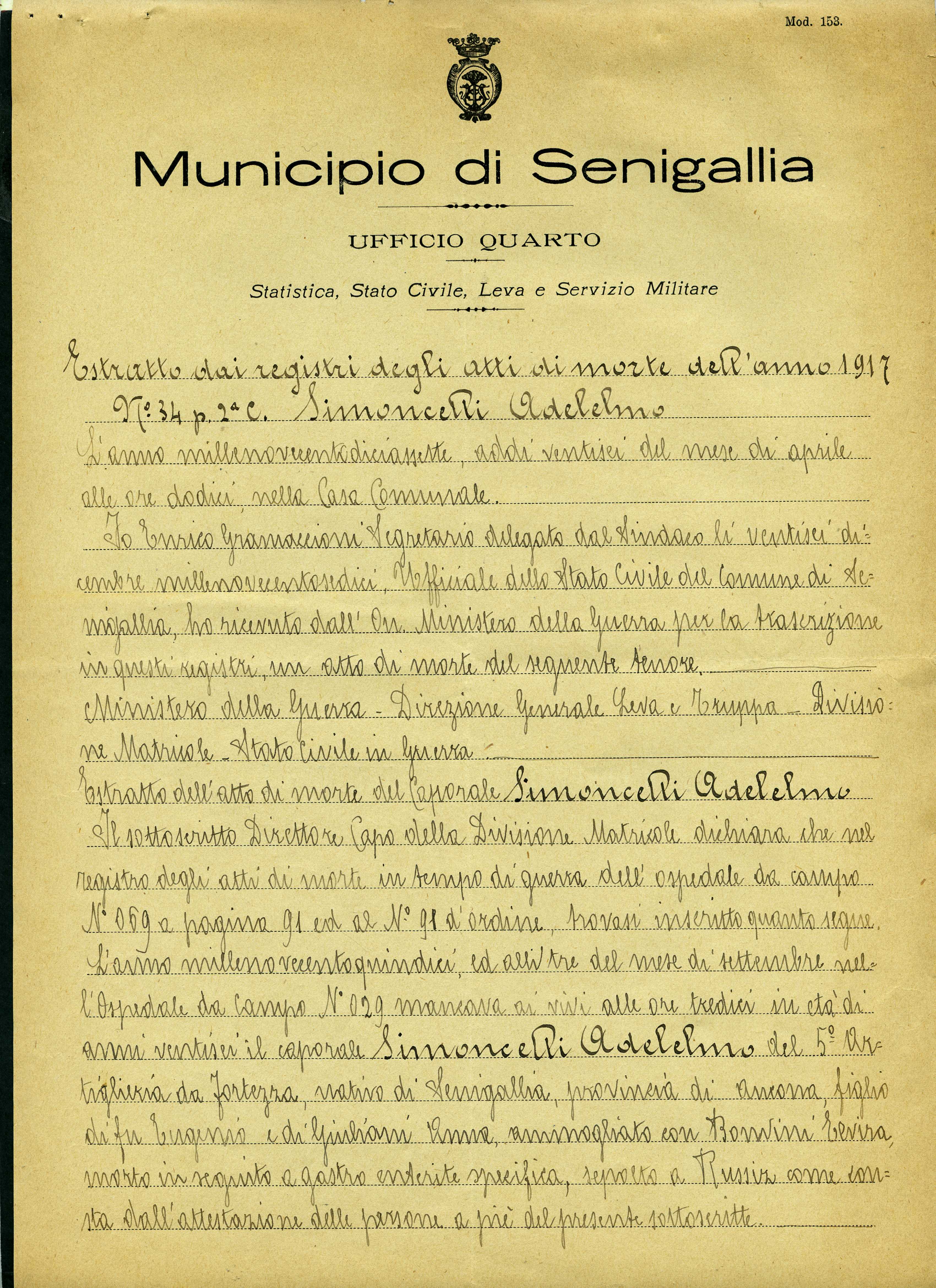 Documento: Simoncelli Adelelmo, Senigallia (Ancona)
