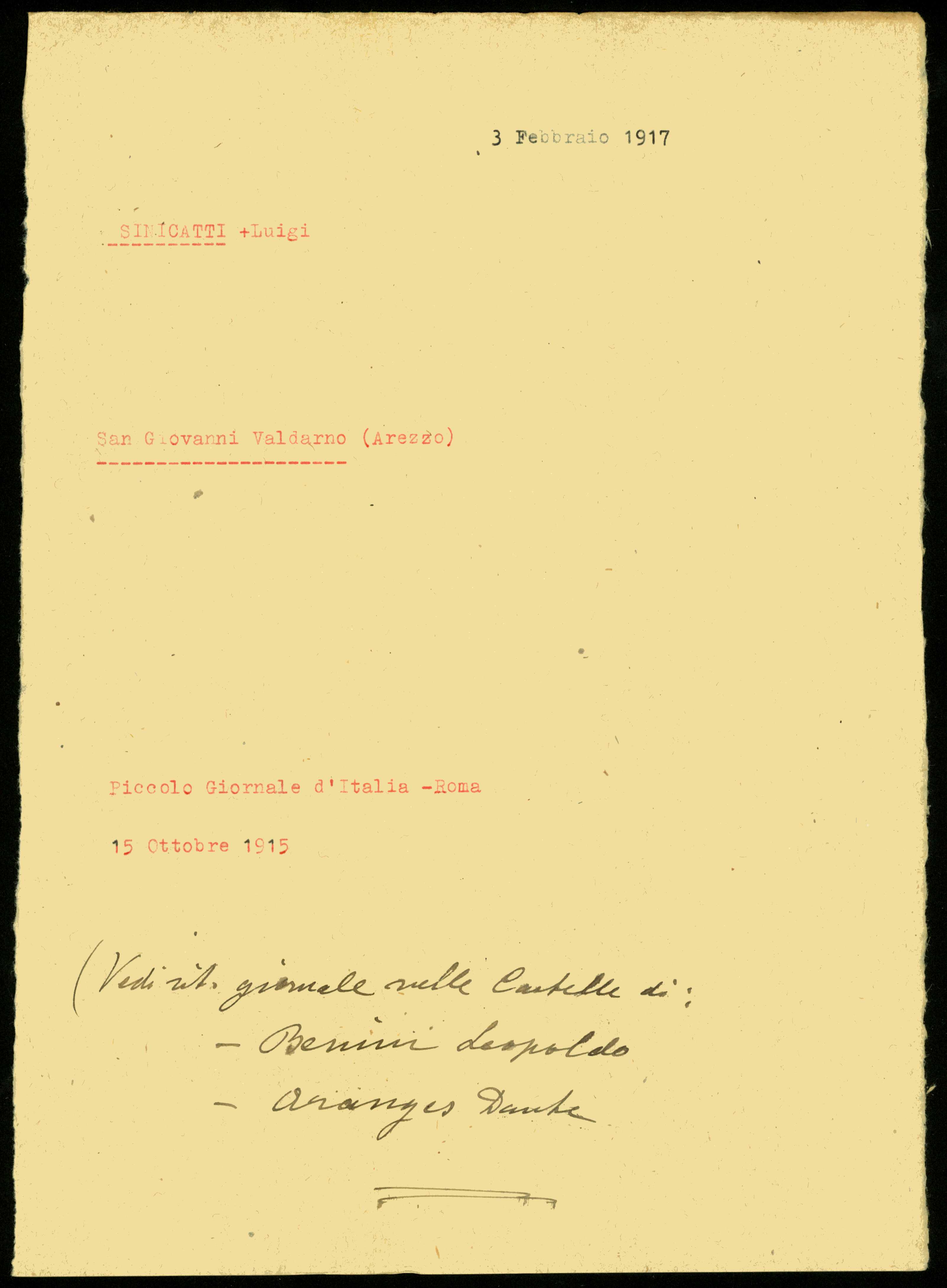 Documento: Sinicatti Luigi, San Giovanni Valdarno (Arezzo)