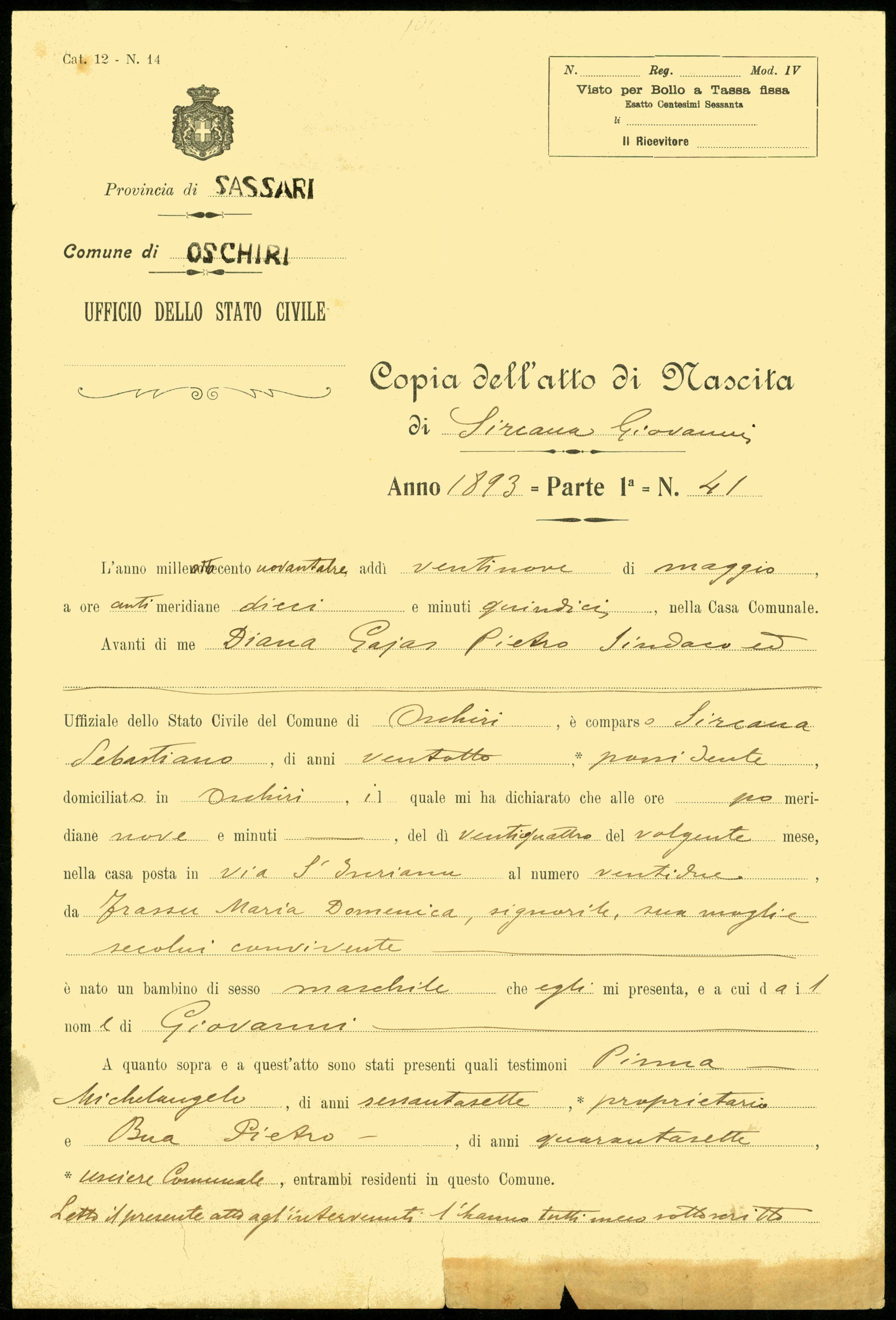 Istituto per la Storia del Risorgimento Italian.../Fondo caduti prima guerra mondiale/Simplo Giuseppe - Slissi Placido/Sircana Giovanni, Oschiri (Sassari)