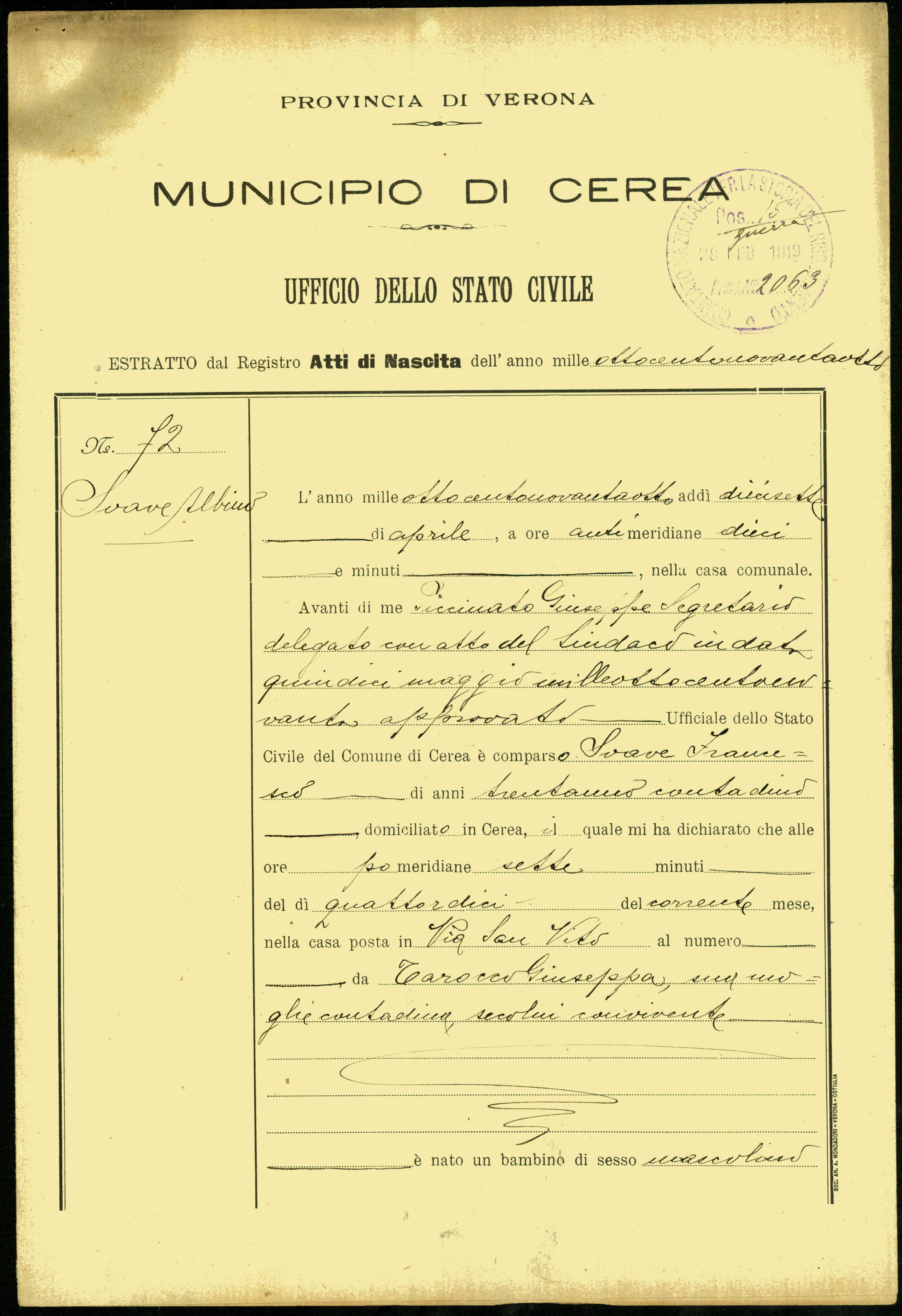 Istituto per la Storia del Risorgimento Italian.../Fondo caduti prima guerra mondiale/Smaldone Giuseppe - Soldo Luciano/Soave Albino, Cerea (Verona)