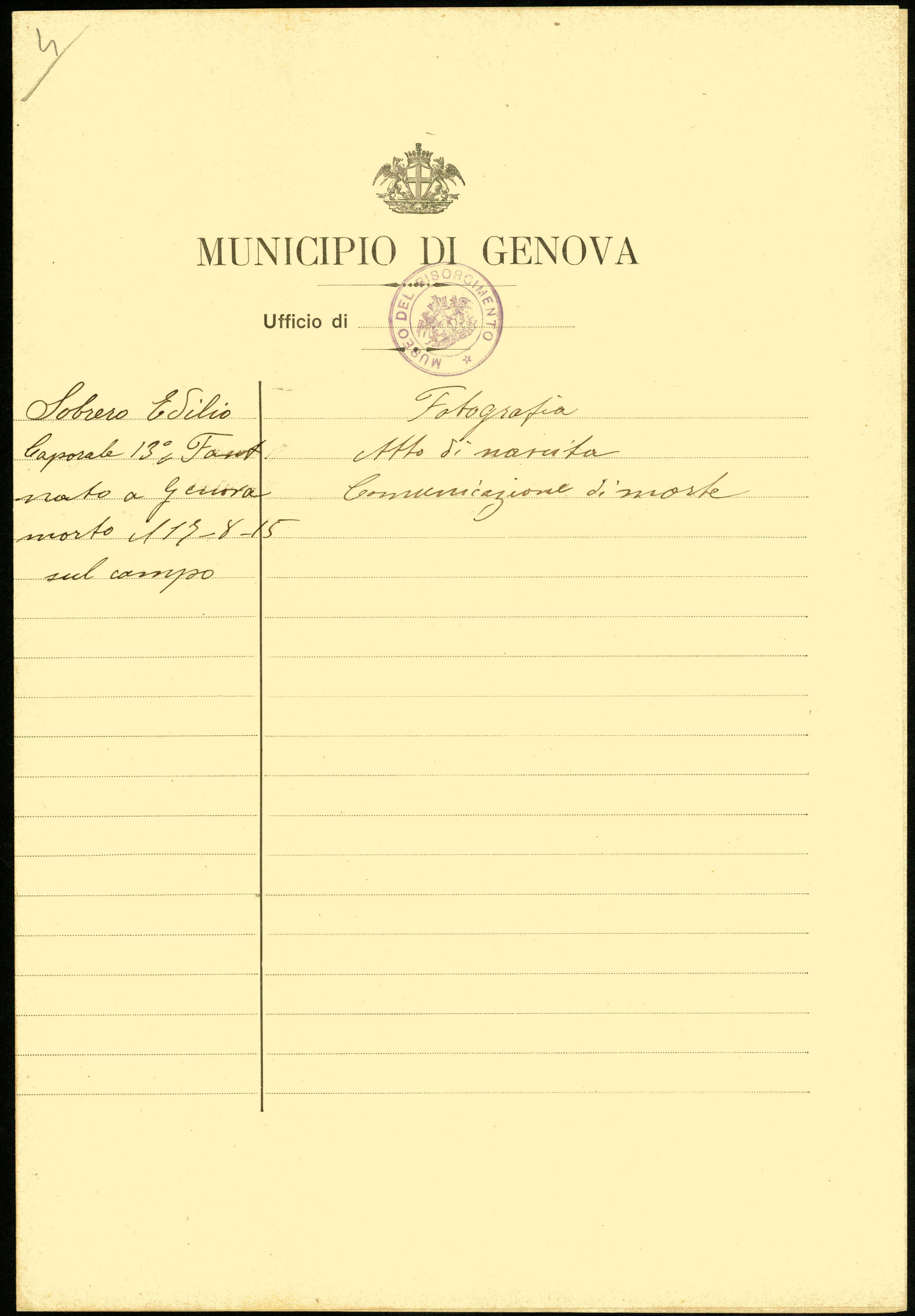 Istituto per la Storia del Risorgimento Italian.../Fondo caduti prima guerra mondiale/Smaldone Giuseppe - Soldo Luciano/Sobrero Edilio, Genova