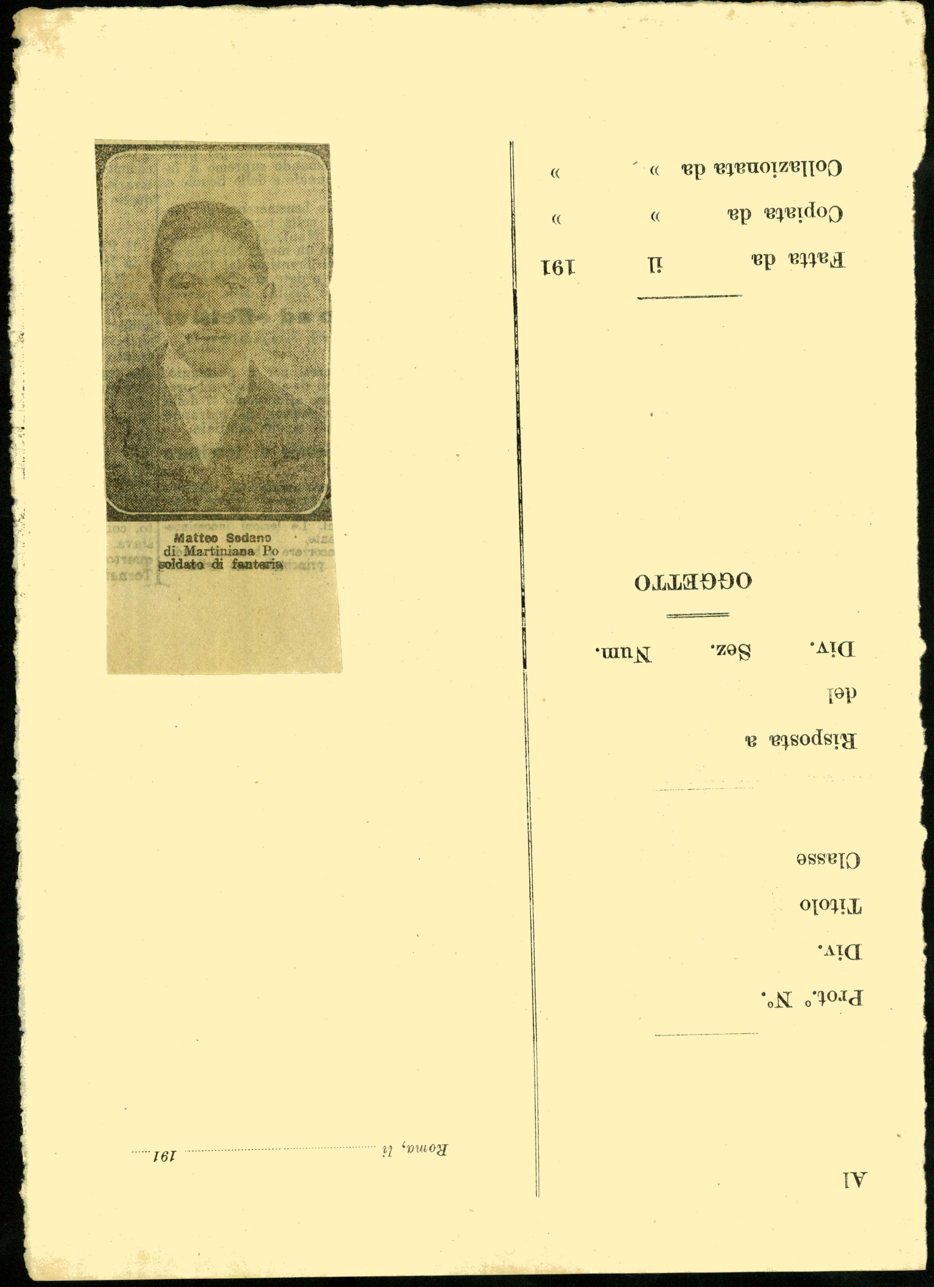 | Percorso: Istituto per la Storia del Risorgimento Italian.../Fondo caduti prima guerra mondiale/Smaldone Giuseppe - Soldo Luciano/Sodano Matteo, Martiniana Po (Cuneo) | |||||||||||